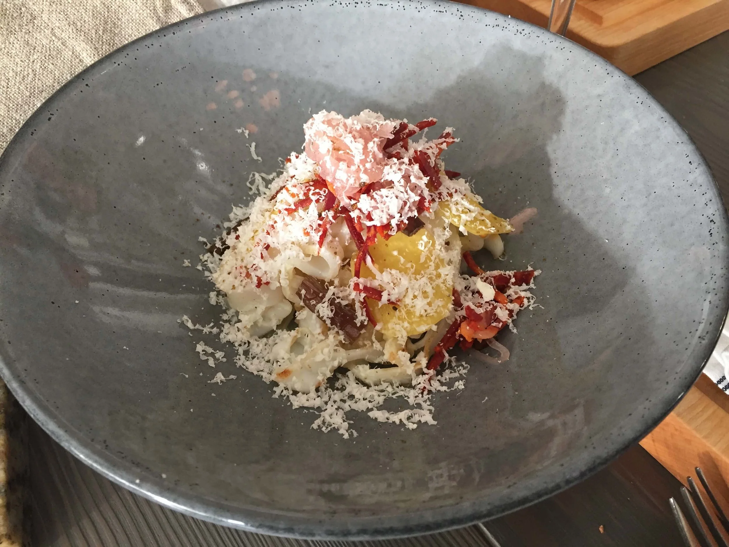 パスタの種類、Tagliatelle(タリアテッレ)風のイカ料理。パスタじゃないよ 笑