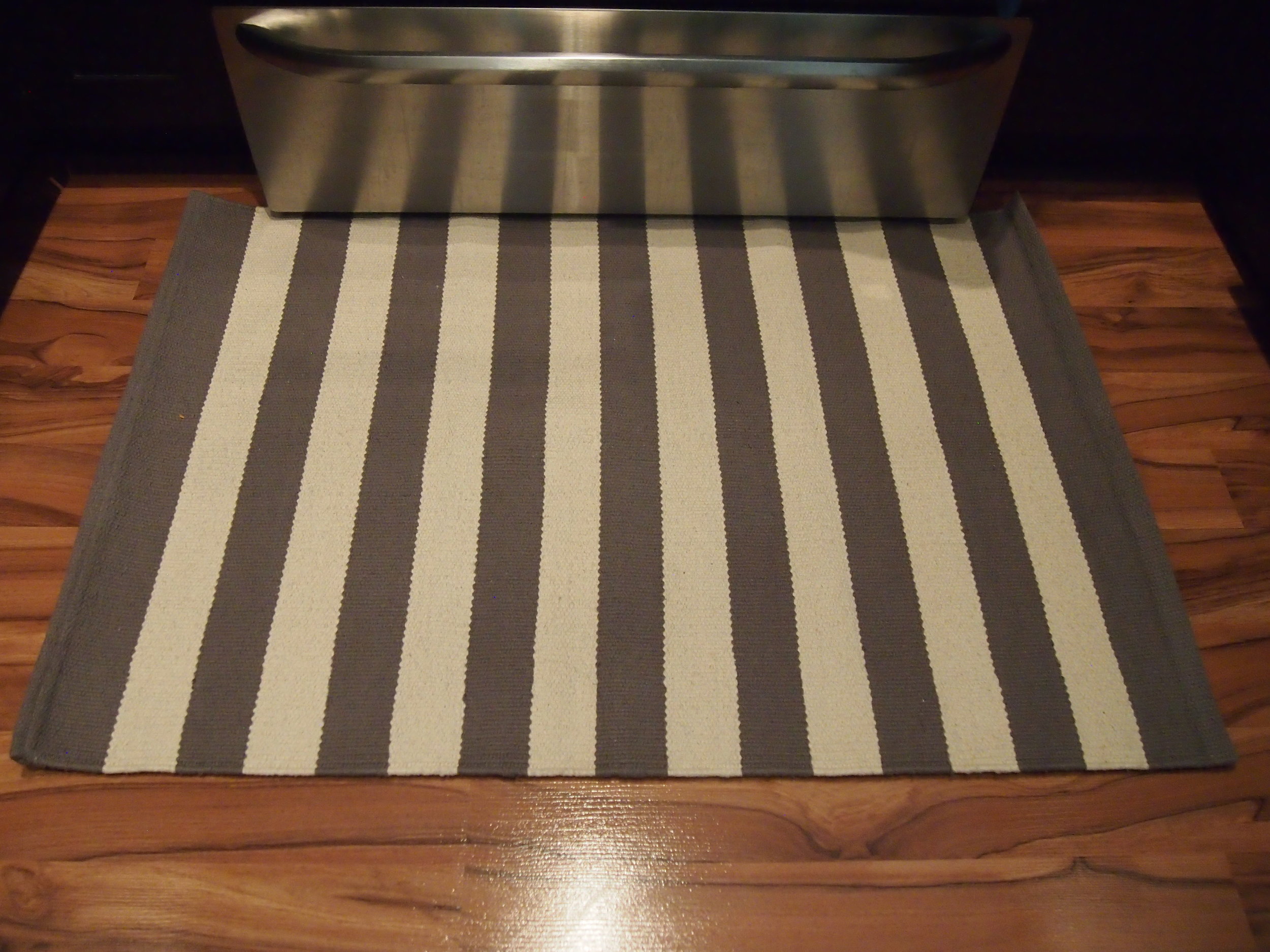 あともう一つ、気に入ったボーダーのマットがありました。これもタグを見たら、洗濯機では洗えないとのことでしたが、店員さんが「乾燥機にかけないければいけるんじゃないかな?」と言っていました。(ほんと〜?)
