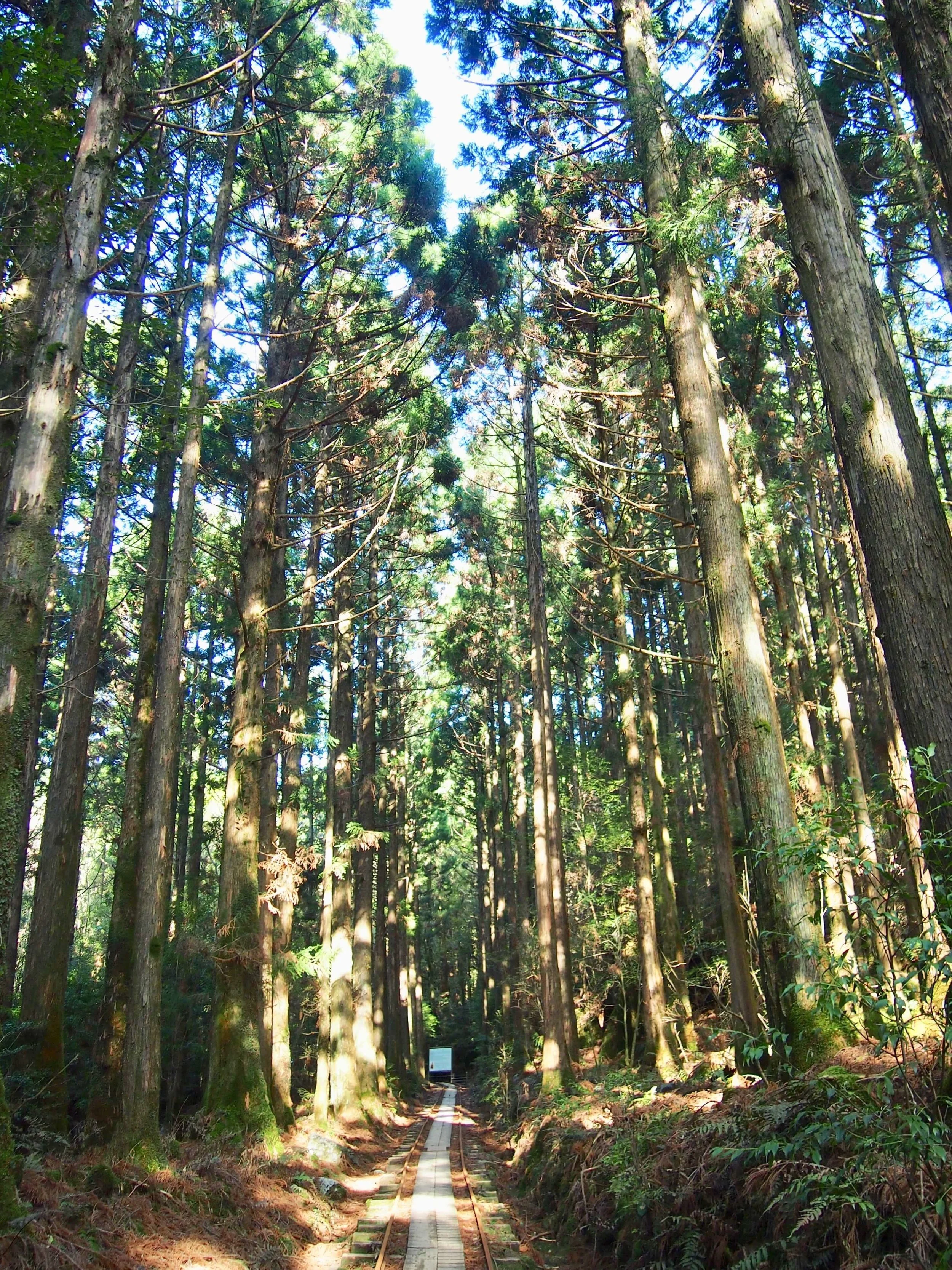 3時間のトロッコ道はひたすら平坦な道ですが、それ以外は結構急な坂道。