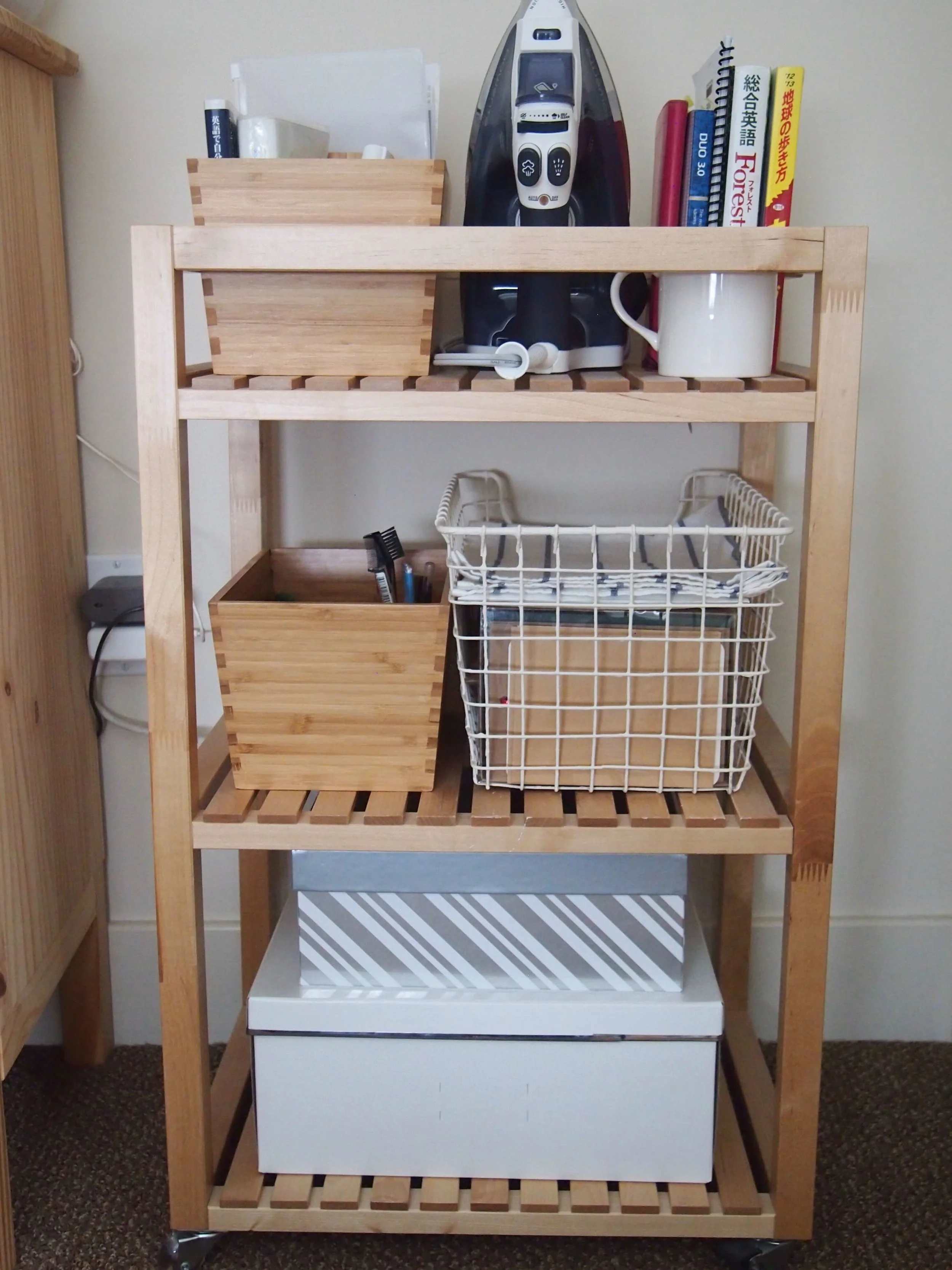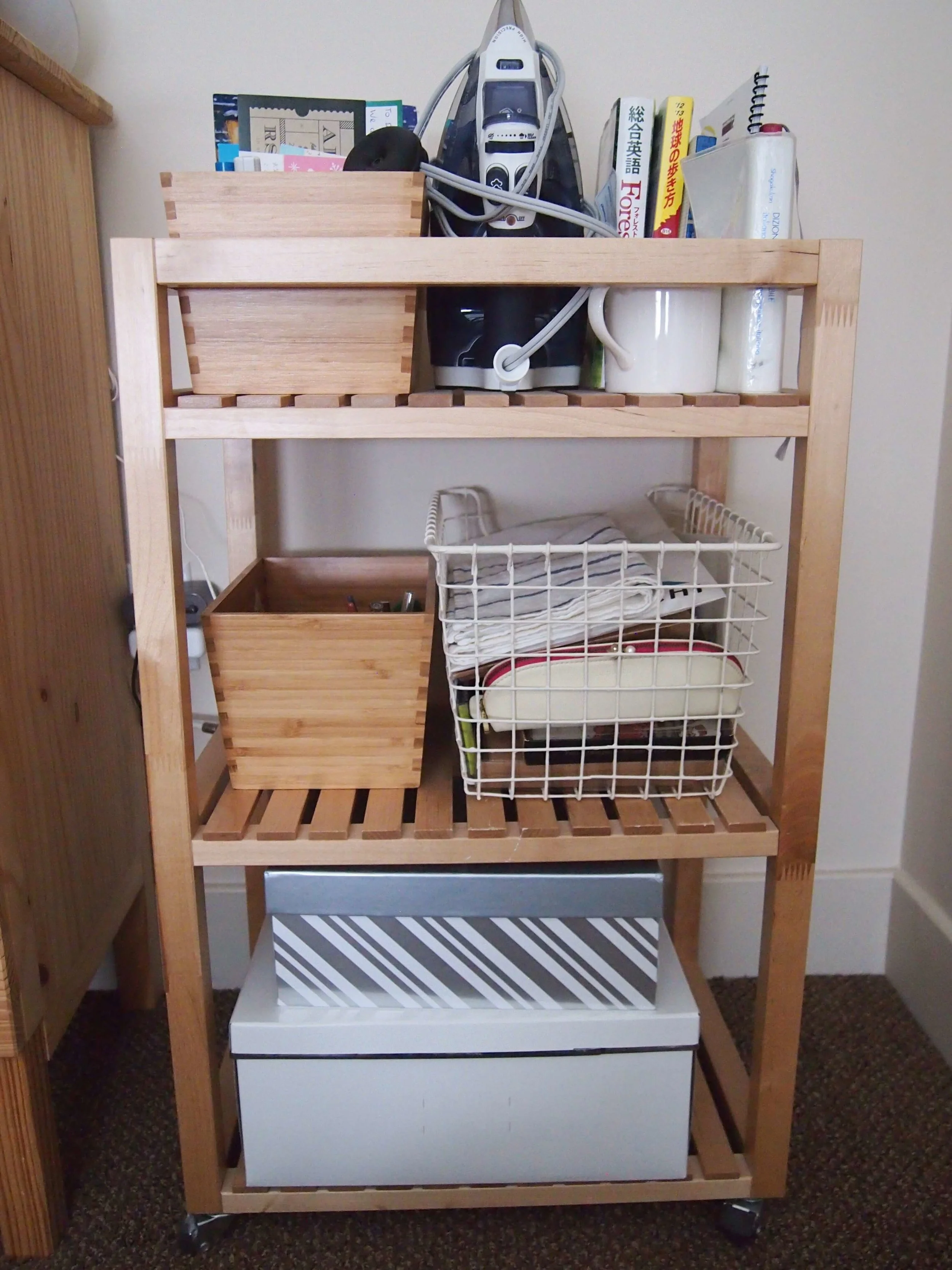 このカートにはIKEAや他のお店で買ったボックスを使って、さらに細々としたものを収納しています!