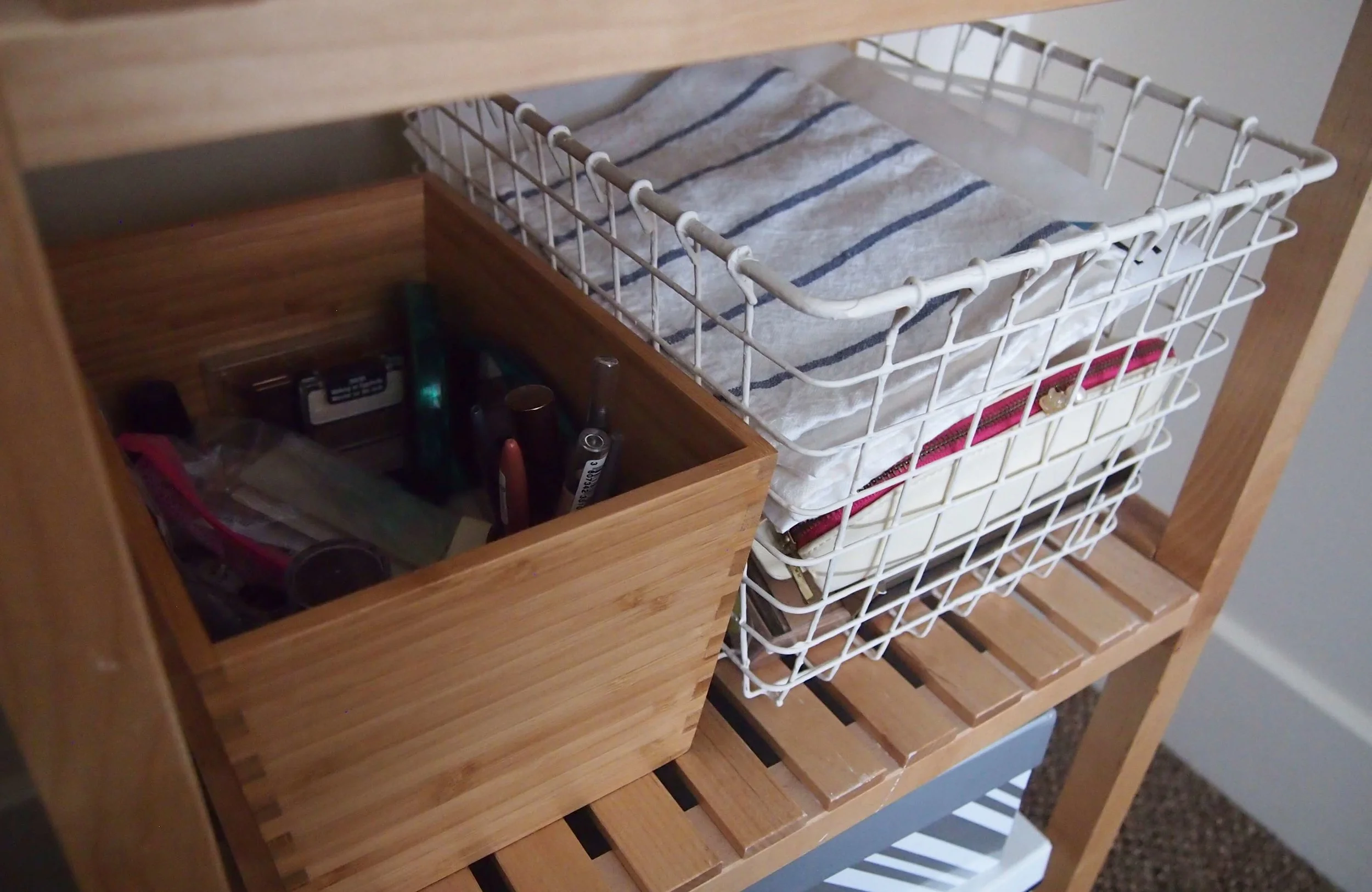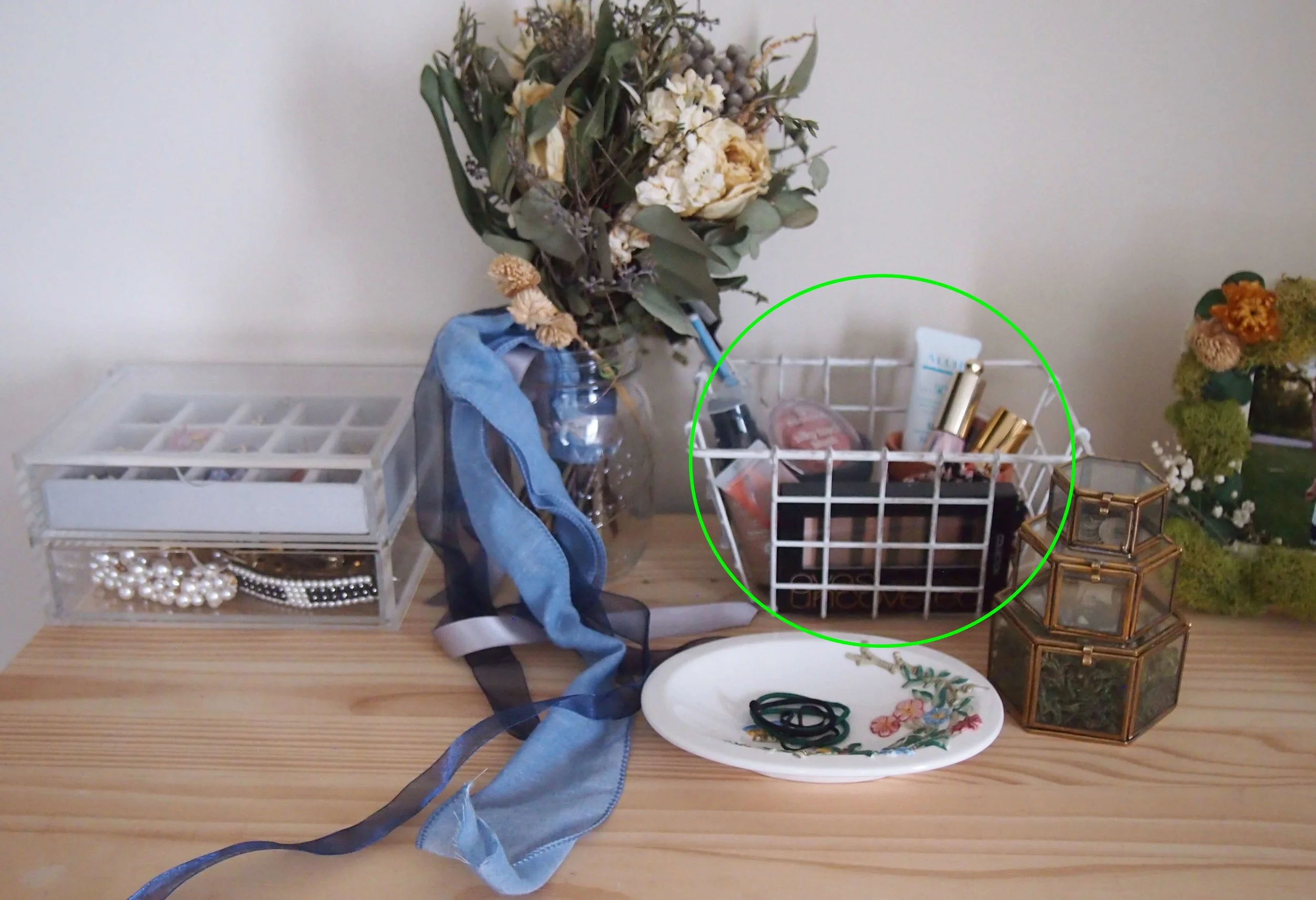 でもこの収納にしてから、この白いカゴにあるメイクを使ったことがほとんどありません。