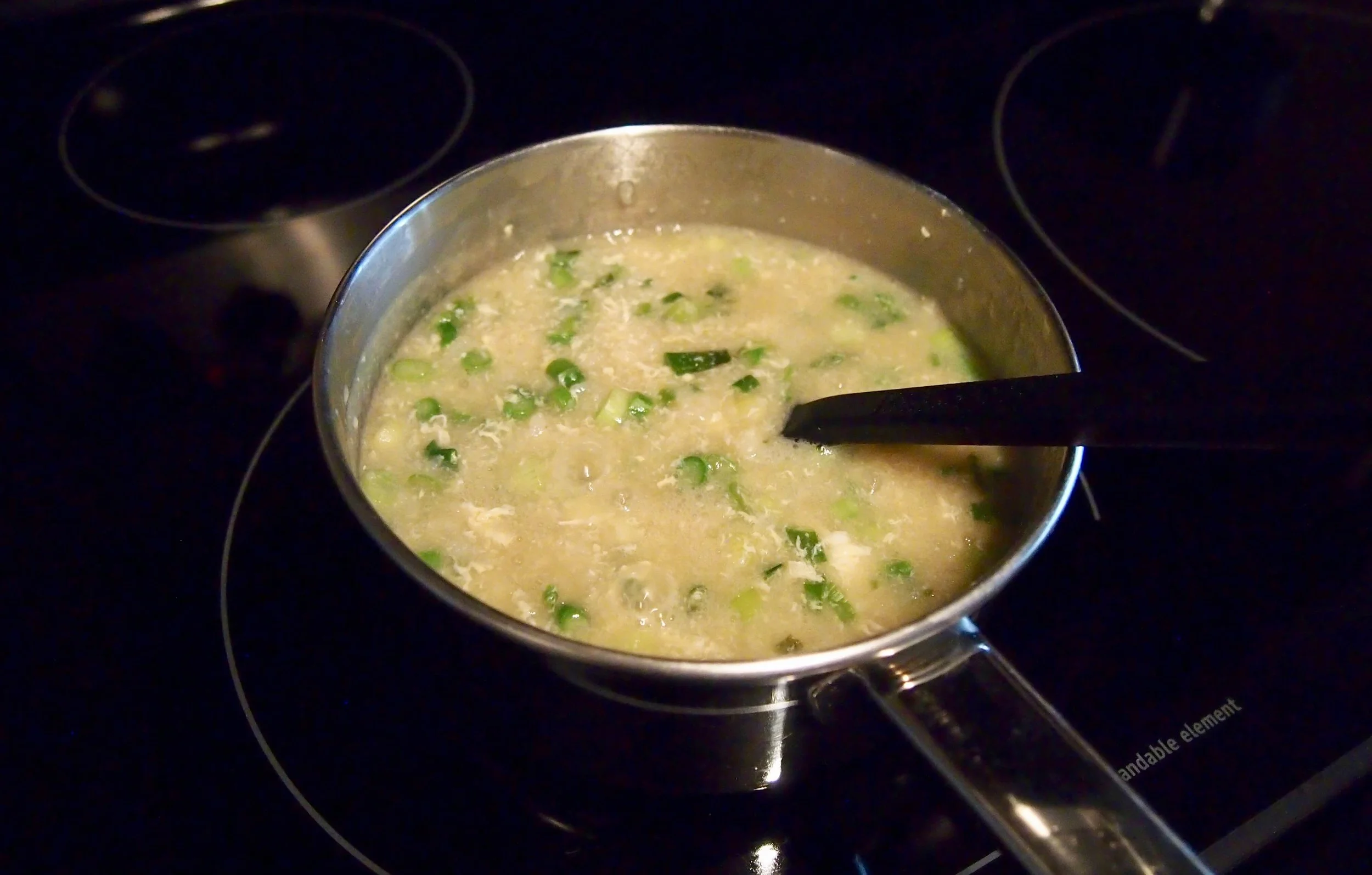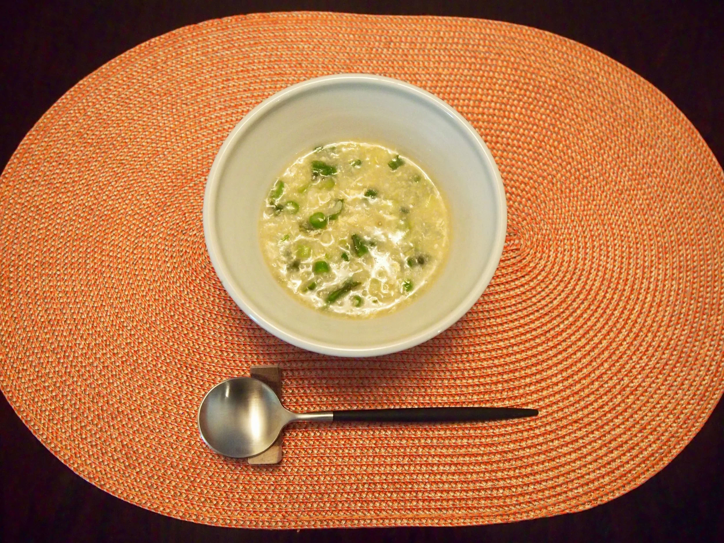 アスパラ、ネギ、生姜、卵を入れて作りました。