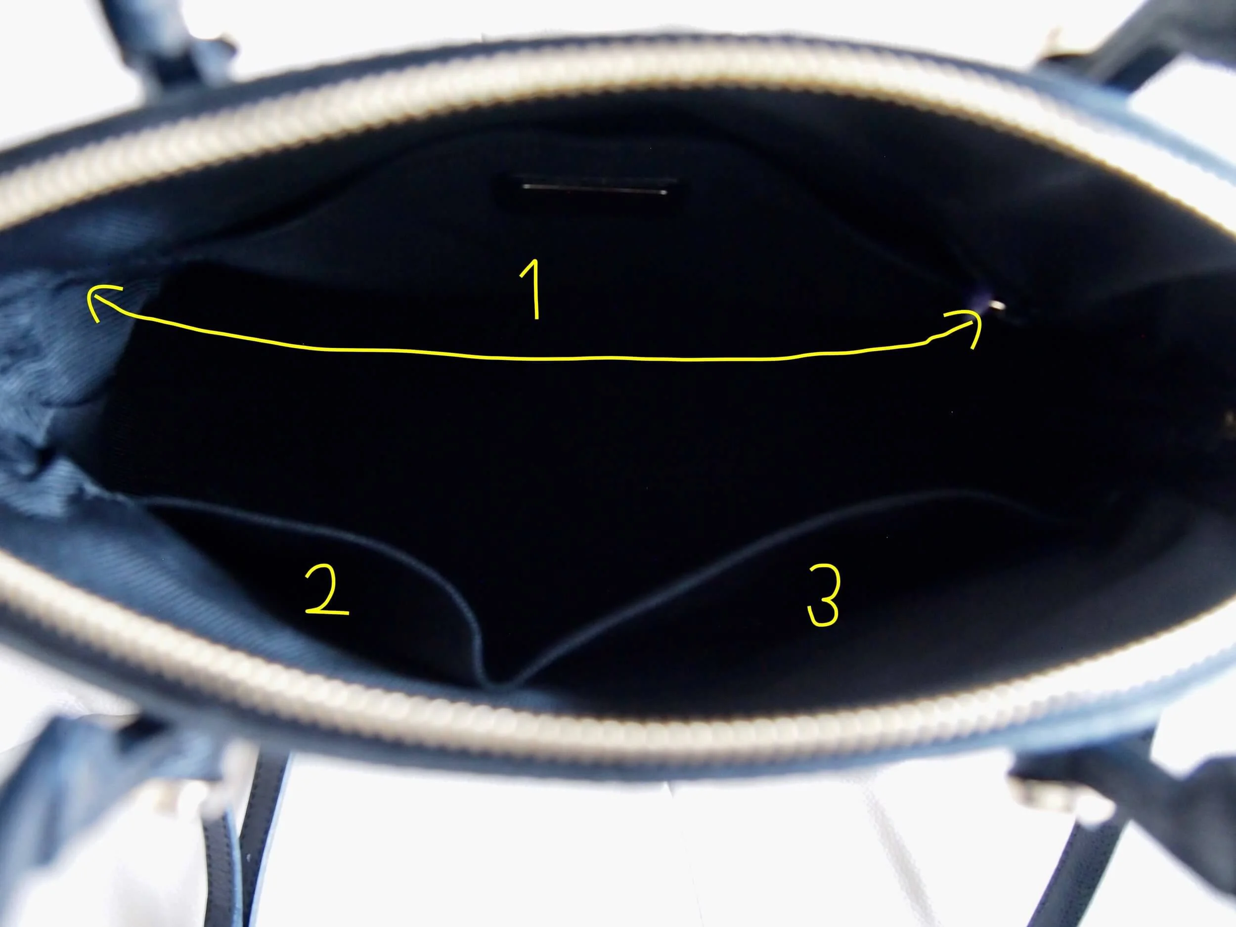 ①が一番大きなポケットで、ここだけファスナー付きです。