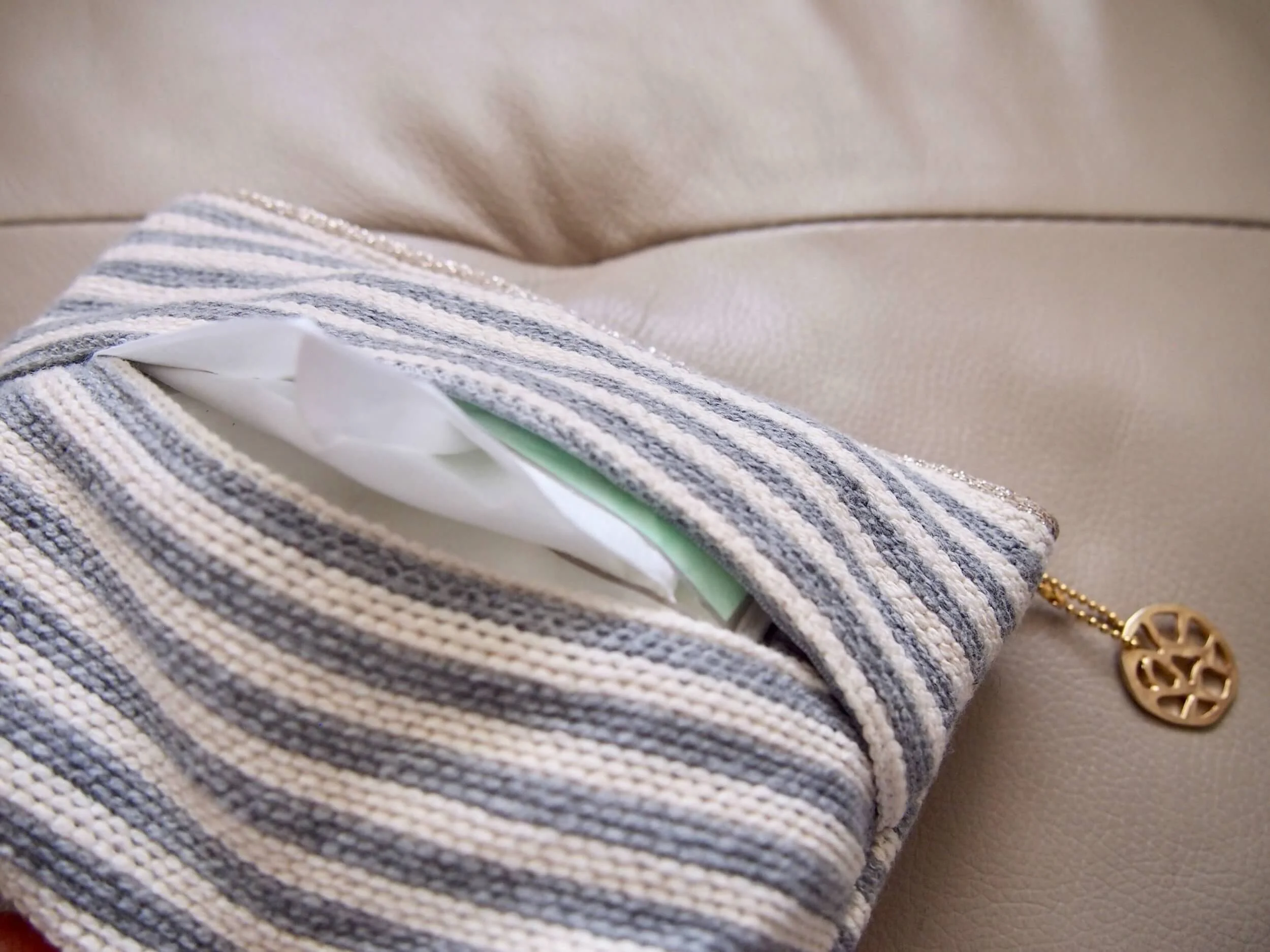 このシマシマポーチはINOBUNという雑貨屋で買ったもの。