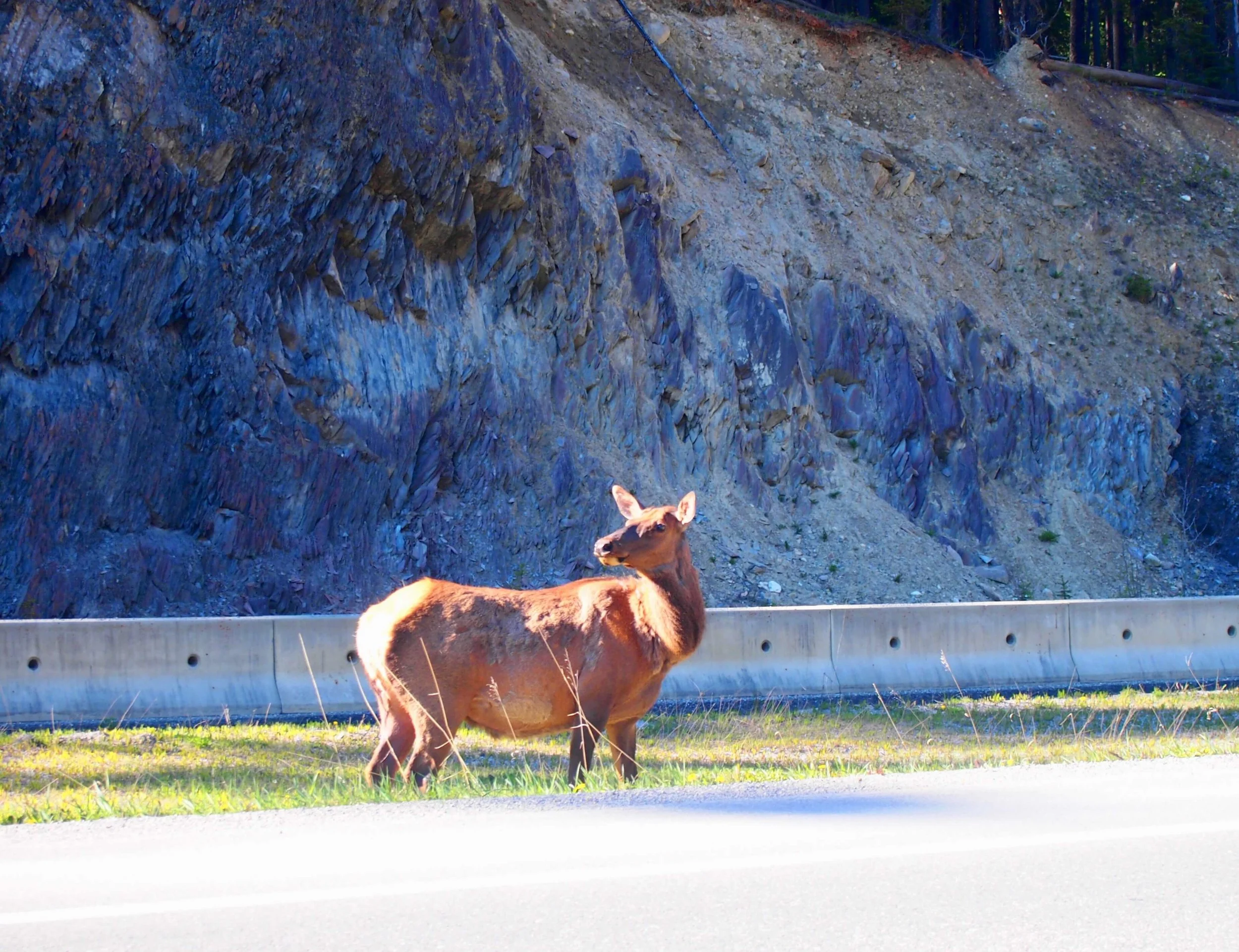 私は、野生のエルクは初めて見ました。角がないのでメスですね。