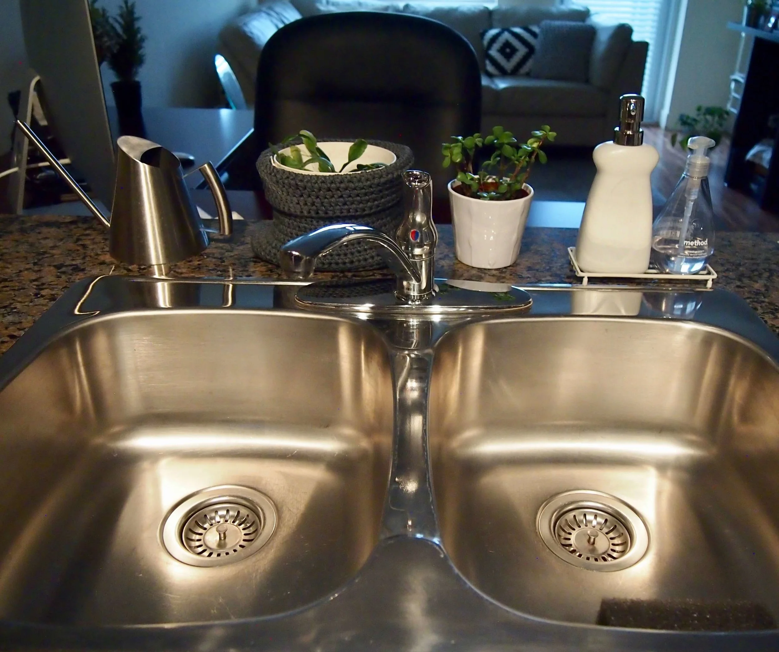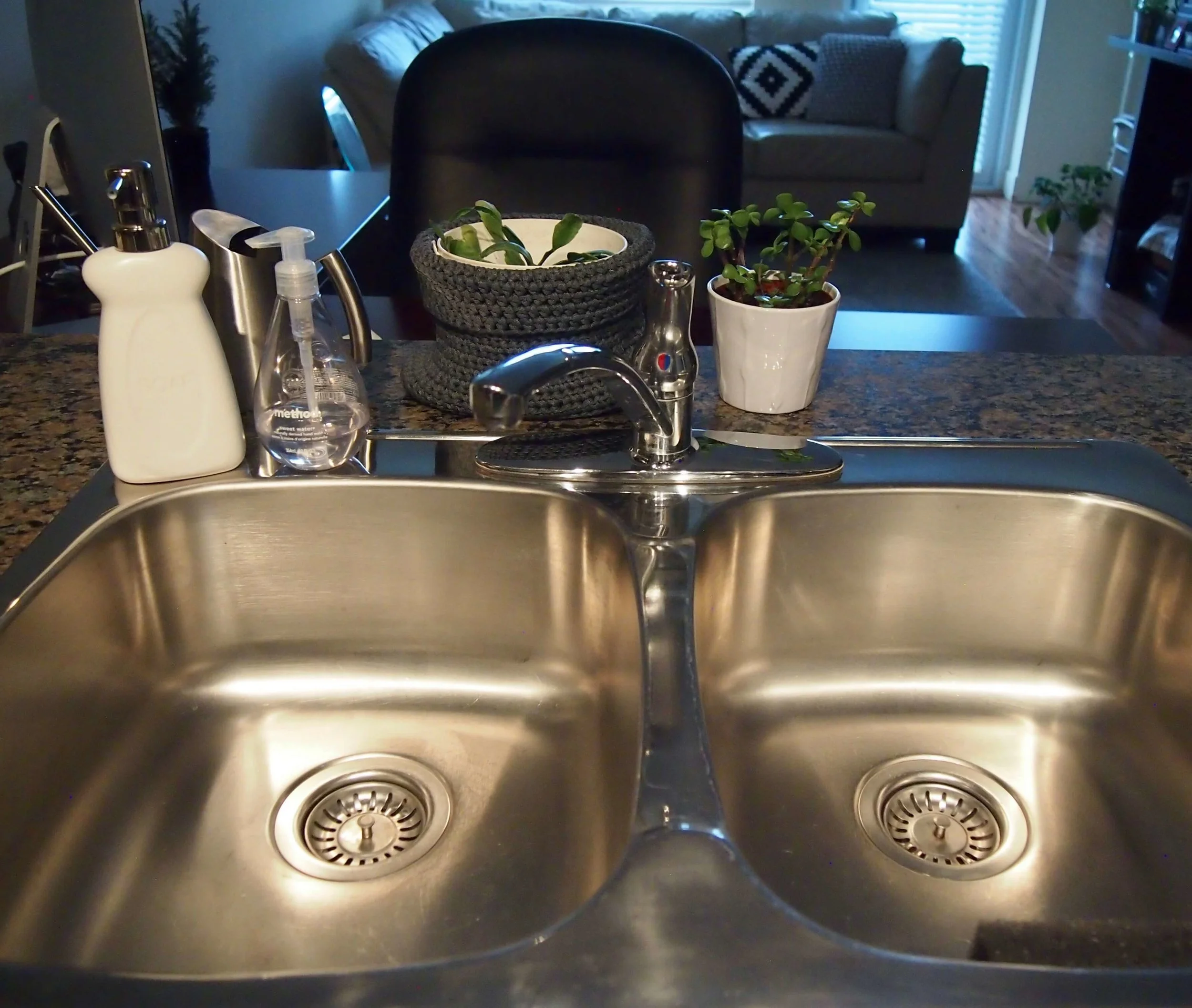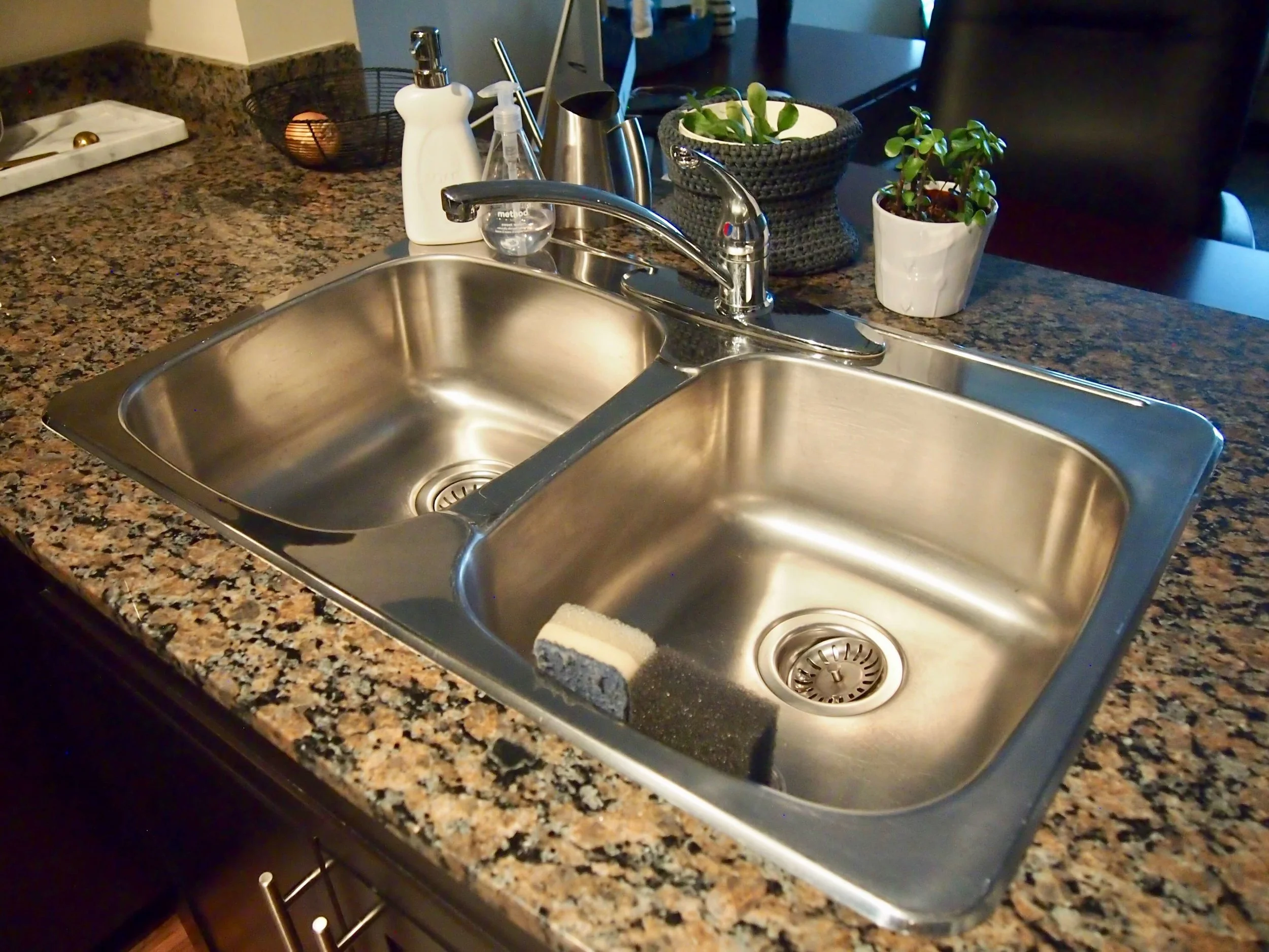 食器洗いの洗剤と手洗い洗剤をシンクの左端の方に直置きして使っていました。