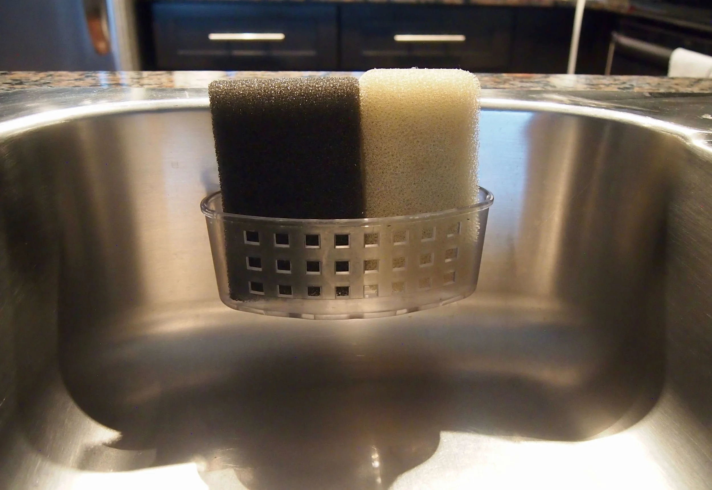 ちなみに写真では両方白に見えますが、スポンジホルダーは若干グレーがかったベージュっぽい色です。