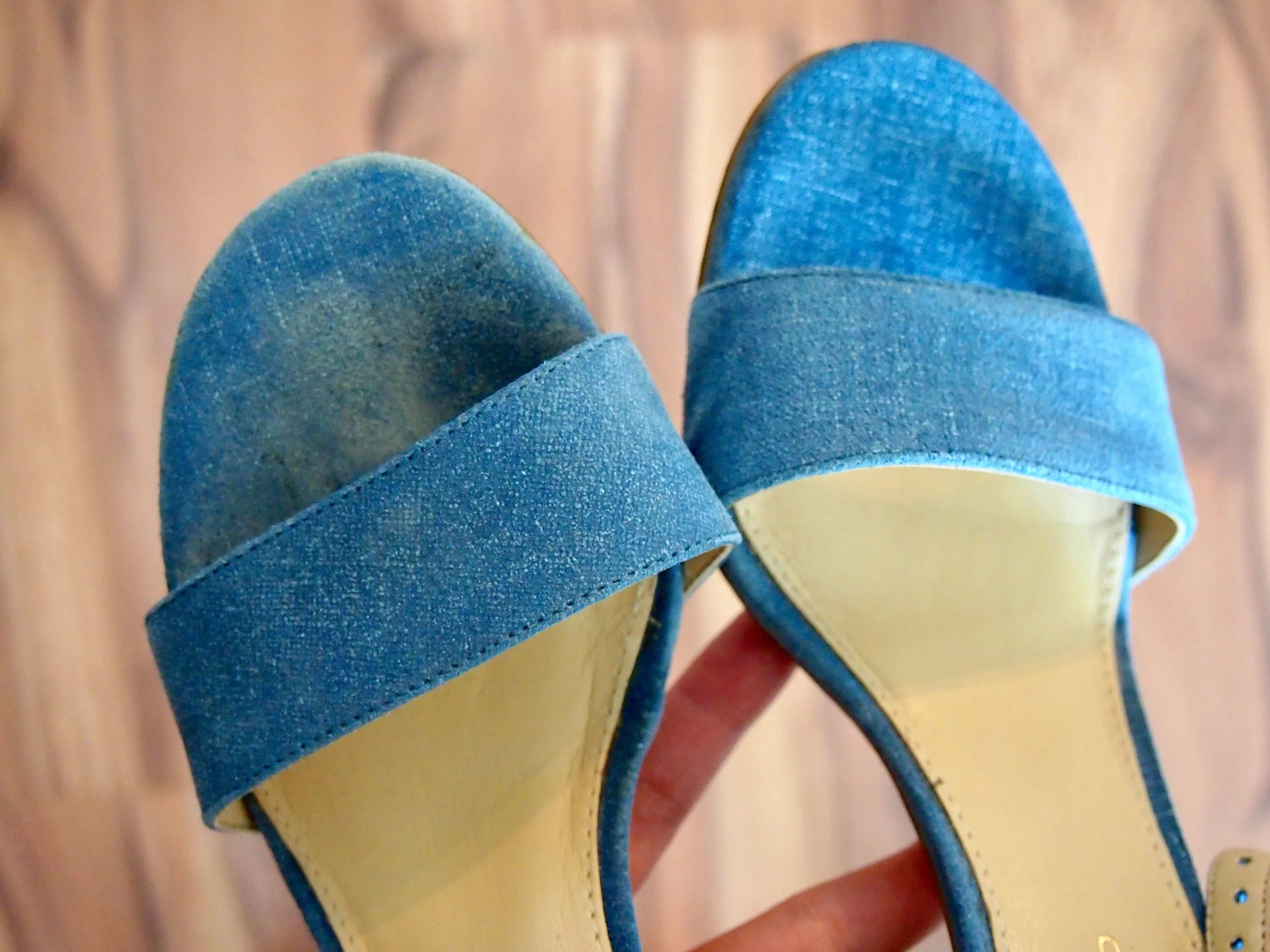 イヴァンカのサンダルも洗った後、シープスキンクリーナー&コンディショナーと、スエード専用のスポンジを使って再度お手入れ。
