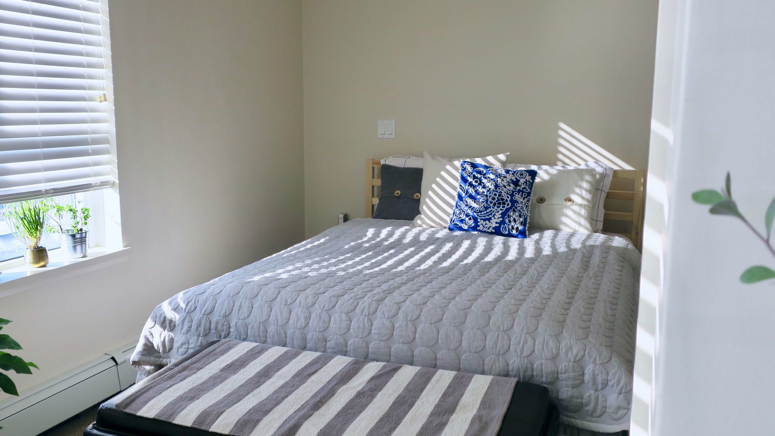 この寝室の窓から差し込む太陽の光がありがたい〜。