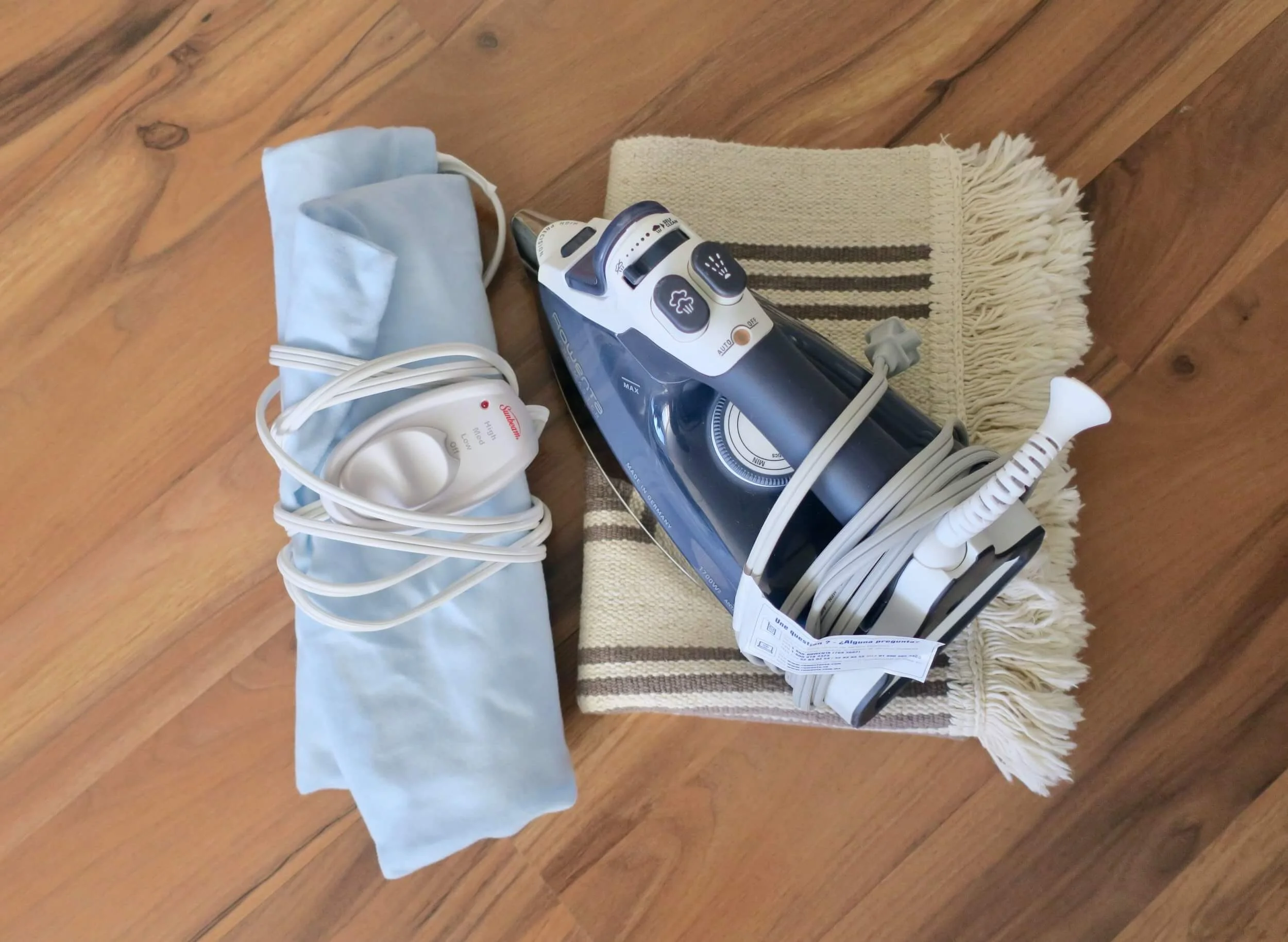 それはアイロンとアイロン台代わりのマット。と電気湯たんぽ。