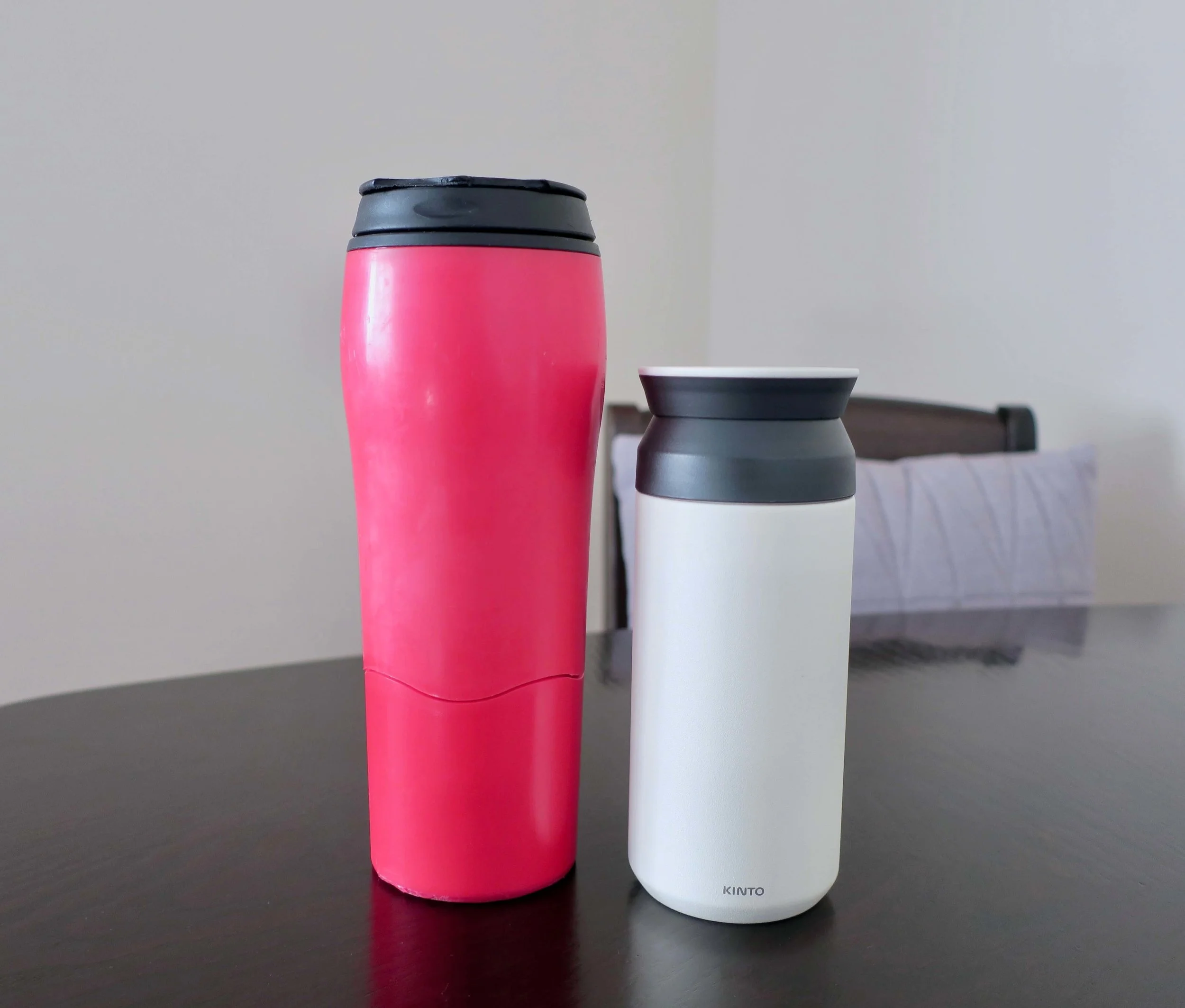 キントートラベルタンブラーは容量が350mlと少し減るけどその分軽くもなるので