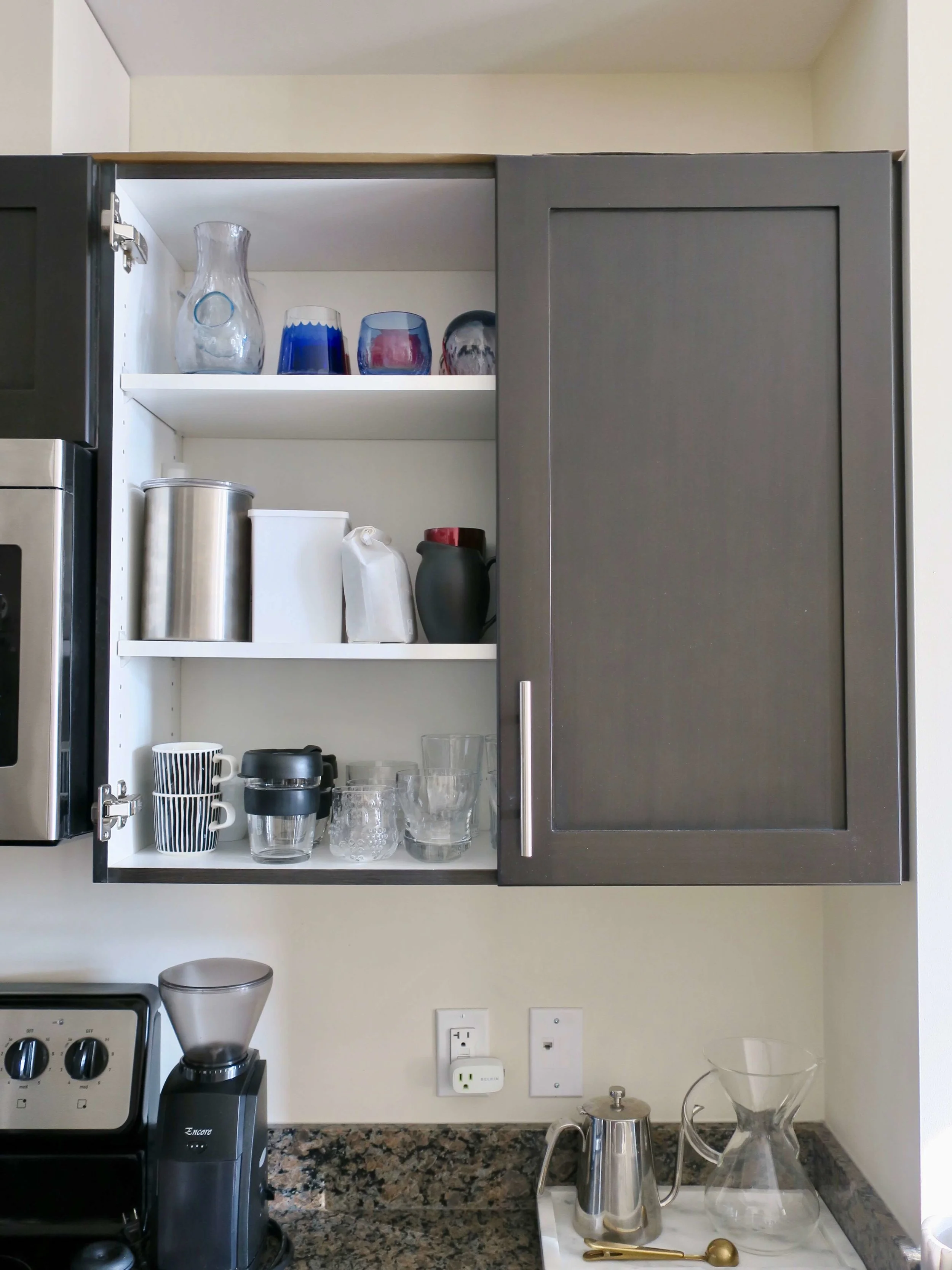 気にしないようにと思っても自然と目に入ってしまうキッチンキャビネット。