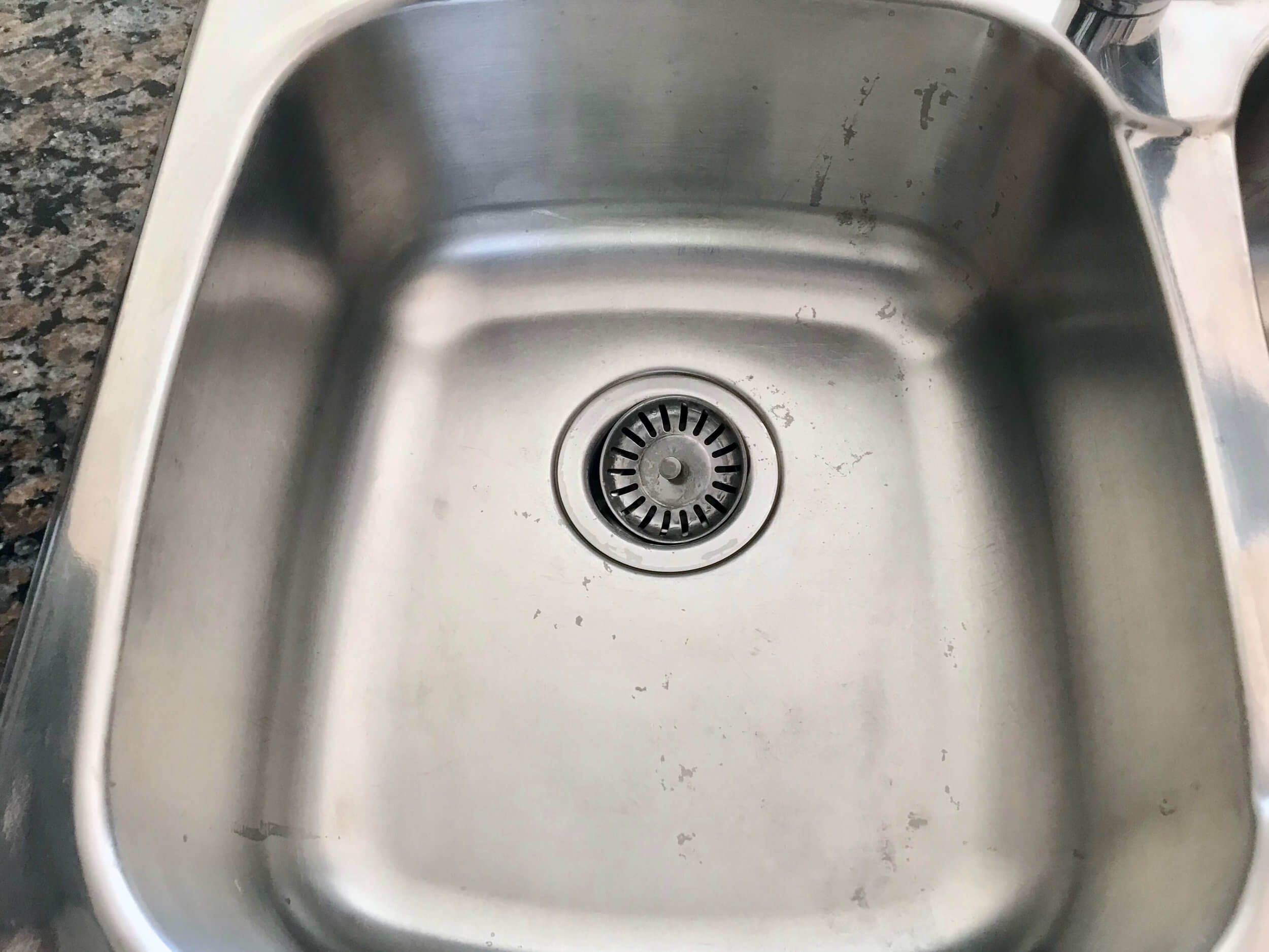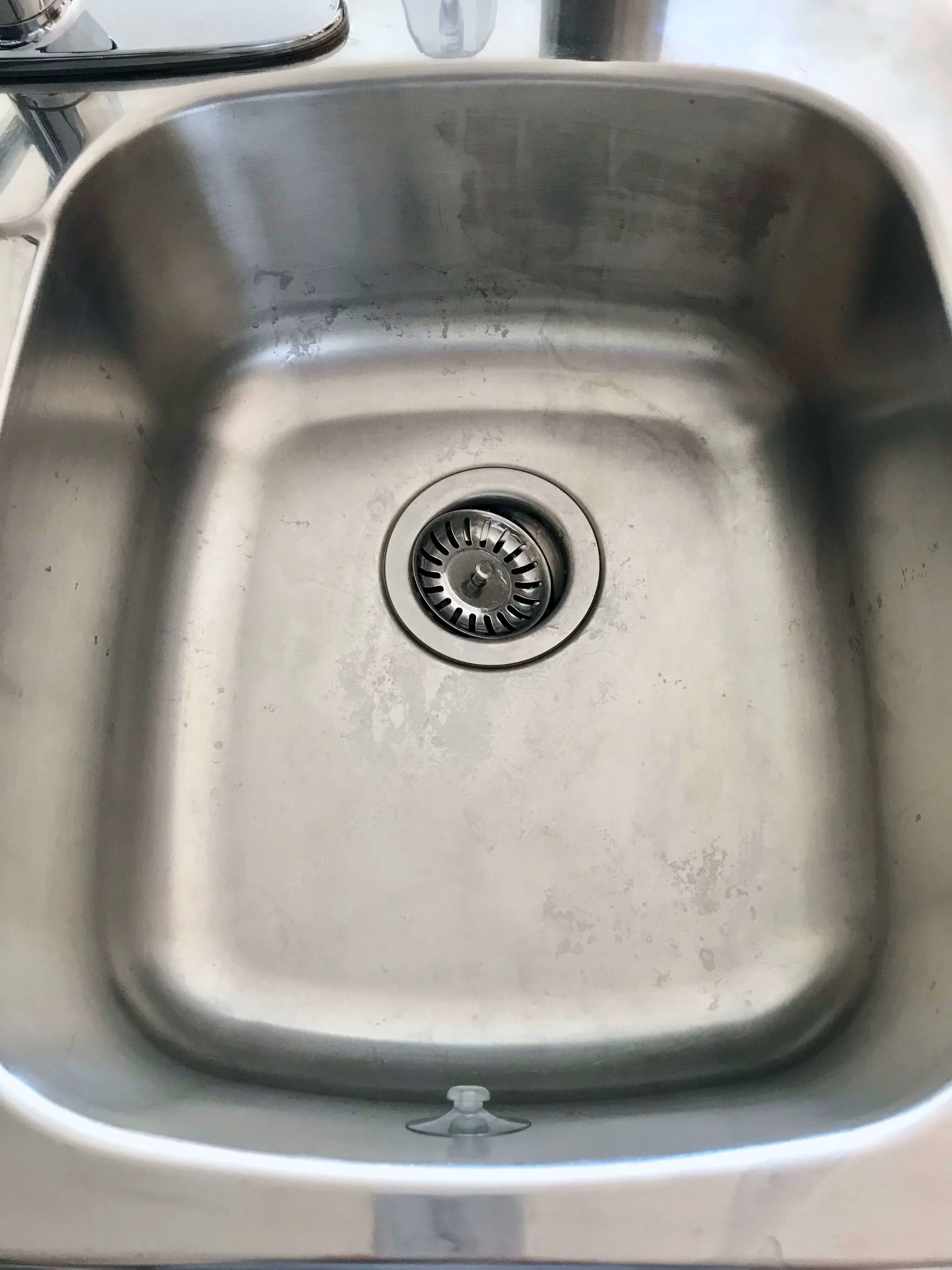 使ったペイントブラシを 夫がこのシンクに置いたせいか所々ニスが固まってシンクのそこら中にへばりついてる。