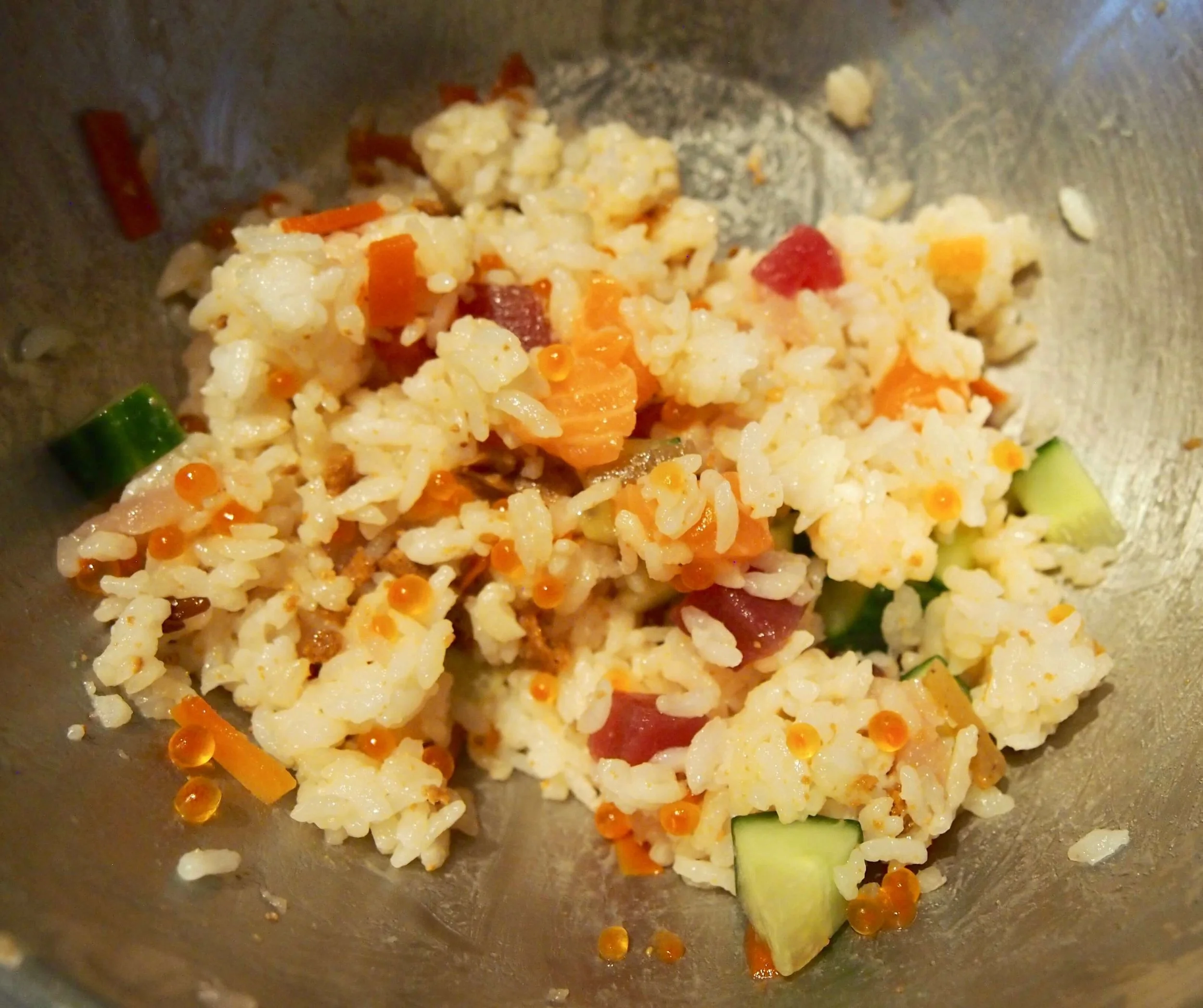 1口サイズにカットしてすし飯に混ぜ混ぜ!