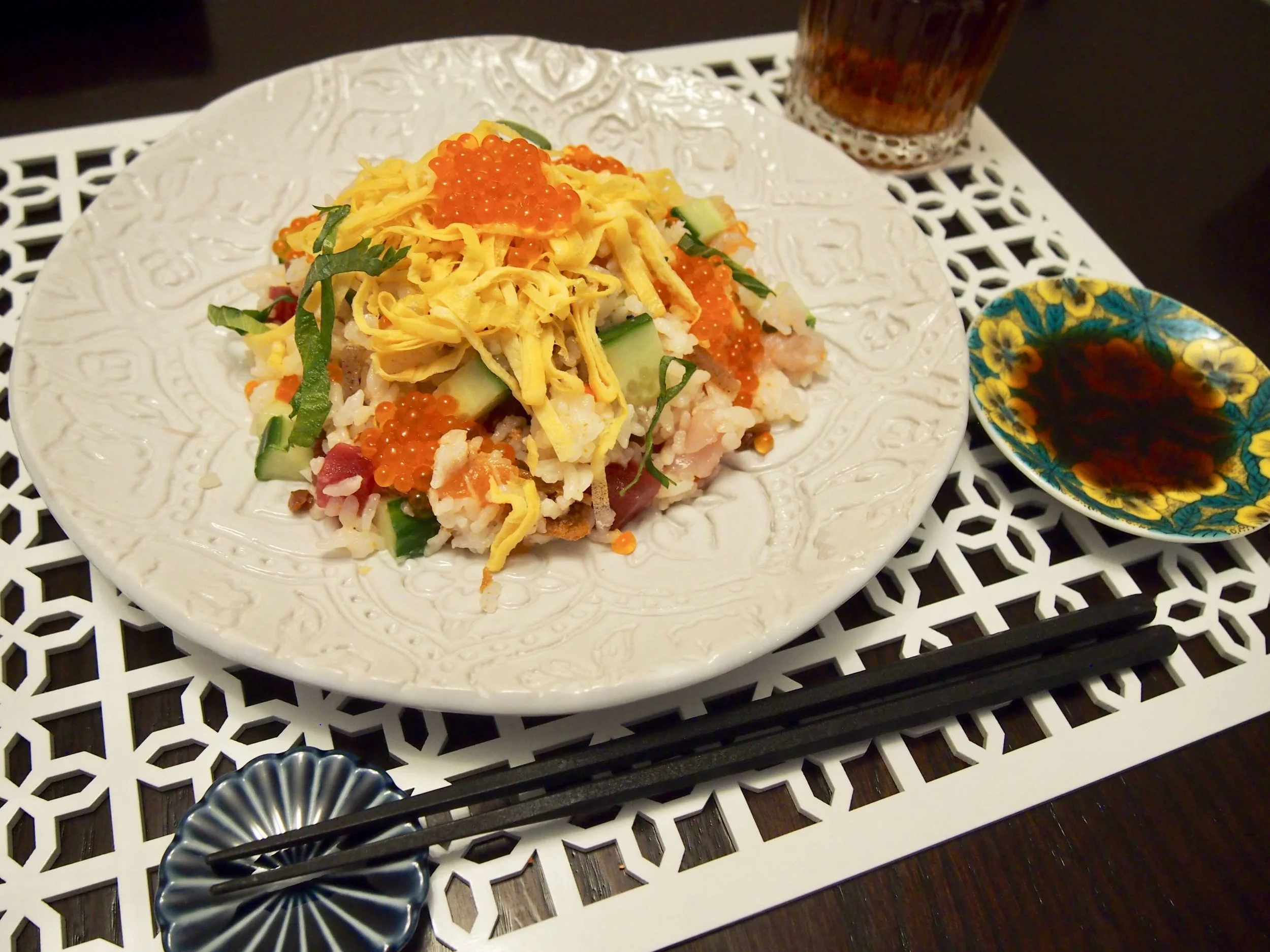 失敗作の錦糸玉子までご丁寧に盛り付けてくれた夫。笑