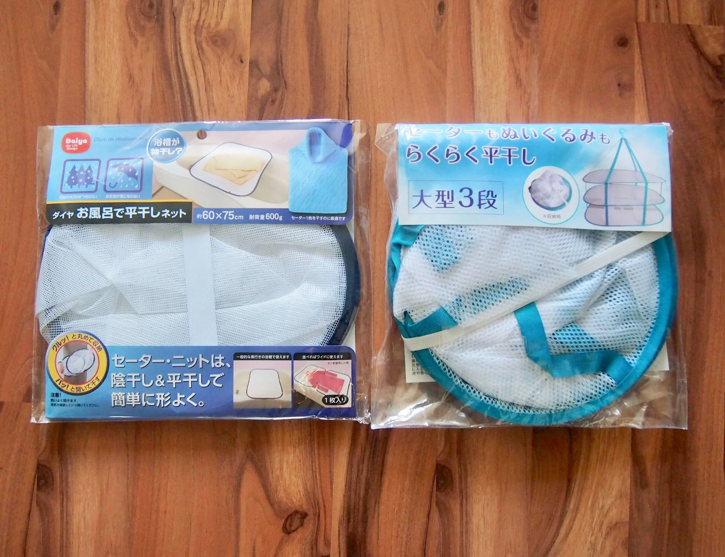 左のものはお風呂の浴槽に置いて平干しできるネット。