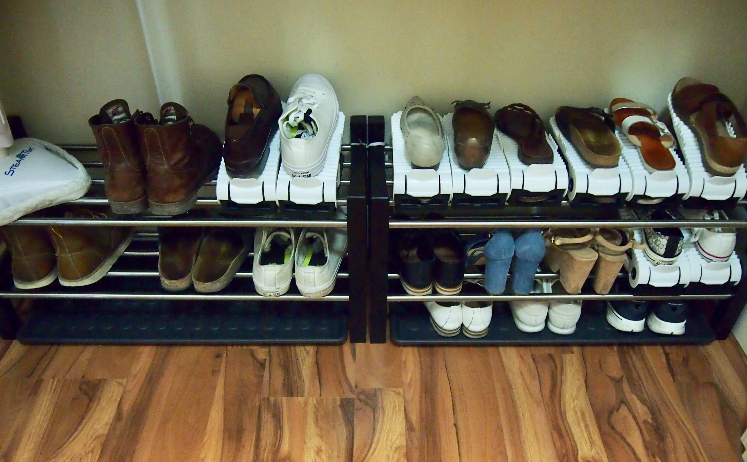 一列に4足の靴しか置けないところが6足置けるので省スペースにはホントに助かる!