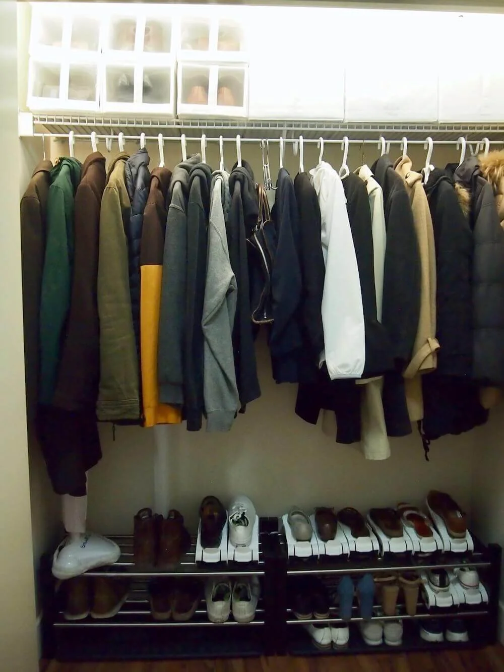 コート掛けを見直し少しスッキリ、靴の模様替えも完了し、やっと使いやすくなった玄関収納。