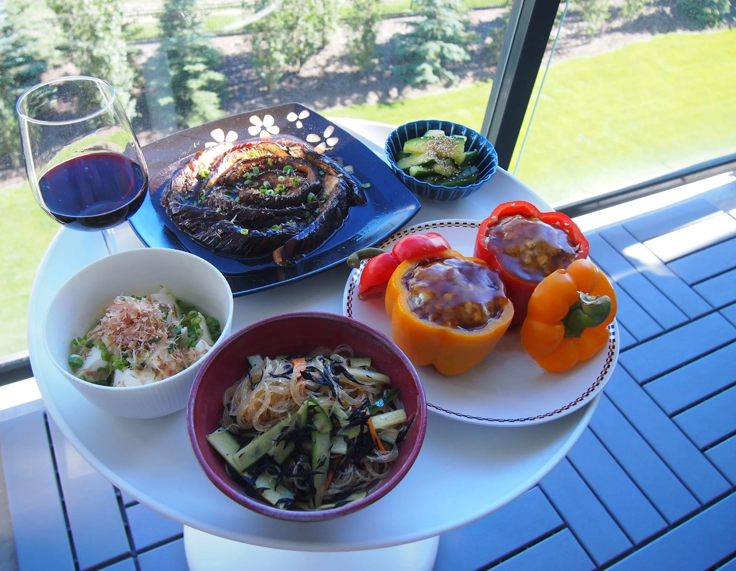 パプリカの肉詰めも甘酢あんかけソースとミンチに豆腐を加えたことで洋風に見えるけど、和風テイスト。