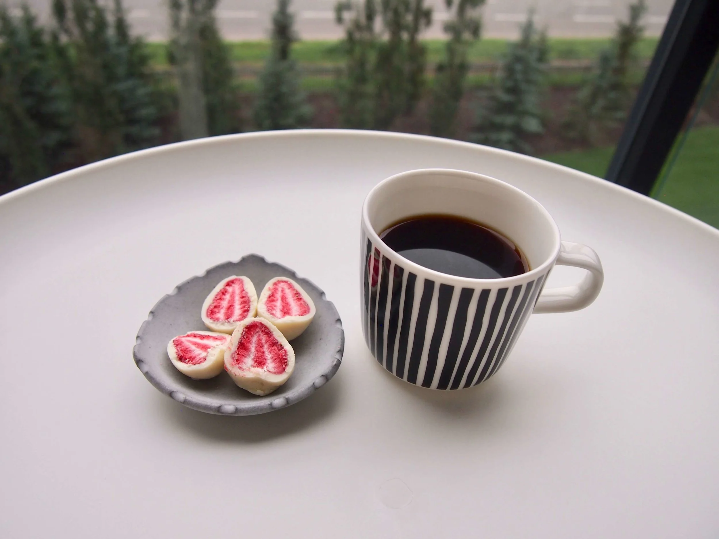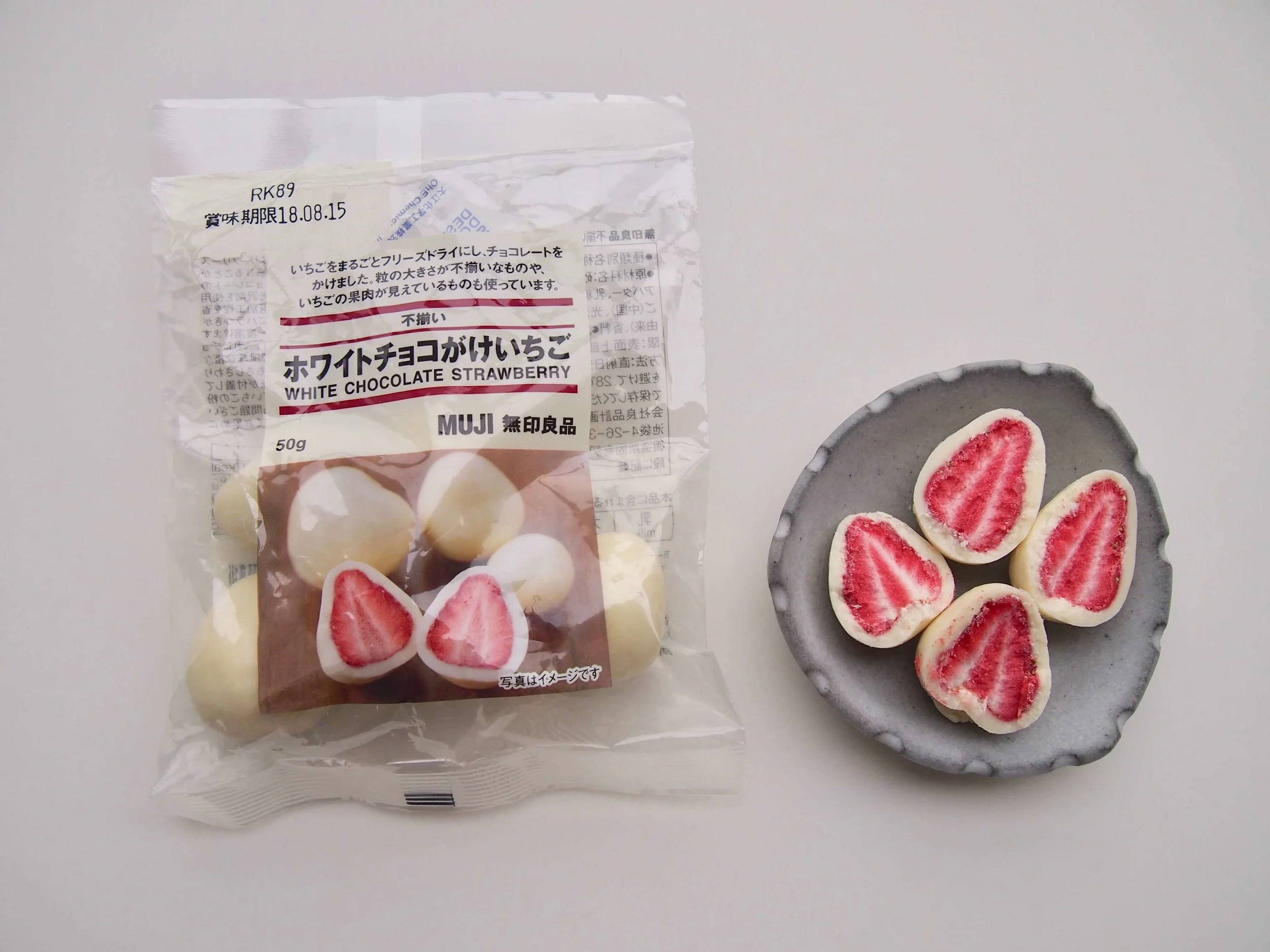 個人的には一口で一気に食べるよりめんどくさいけど半分に割って食べる方が フリーズドライのいちごとホワイトチョコレートがよりうまく融合して美味しく味わえる気がします。
