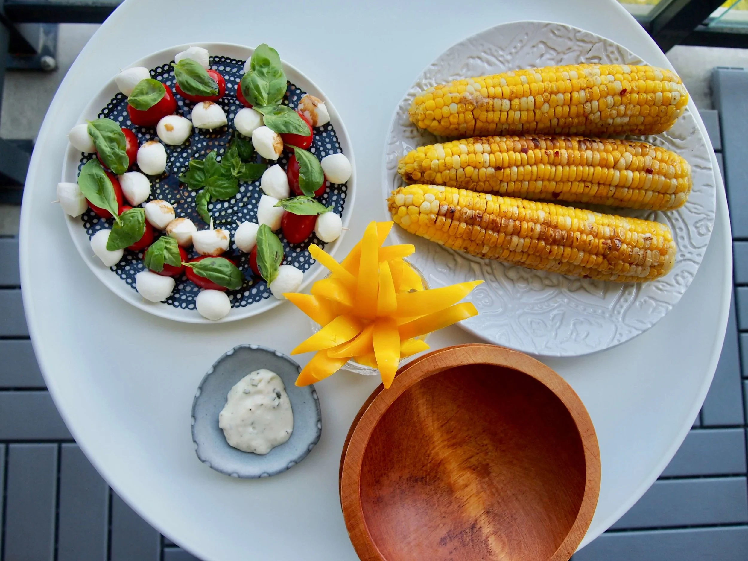 肉なし炭水化物なしの軽い夕飯ですが とうもろこし1本が結構お腹にたまりました。
