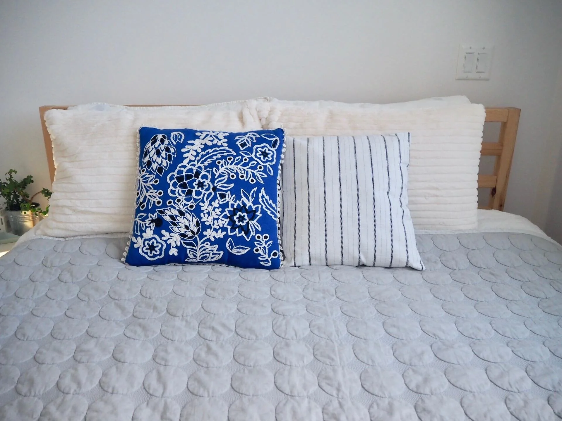 IKEAの40cm & 40×60cmのクッションカバーで寝室の簡単模様替え!