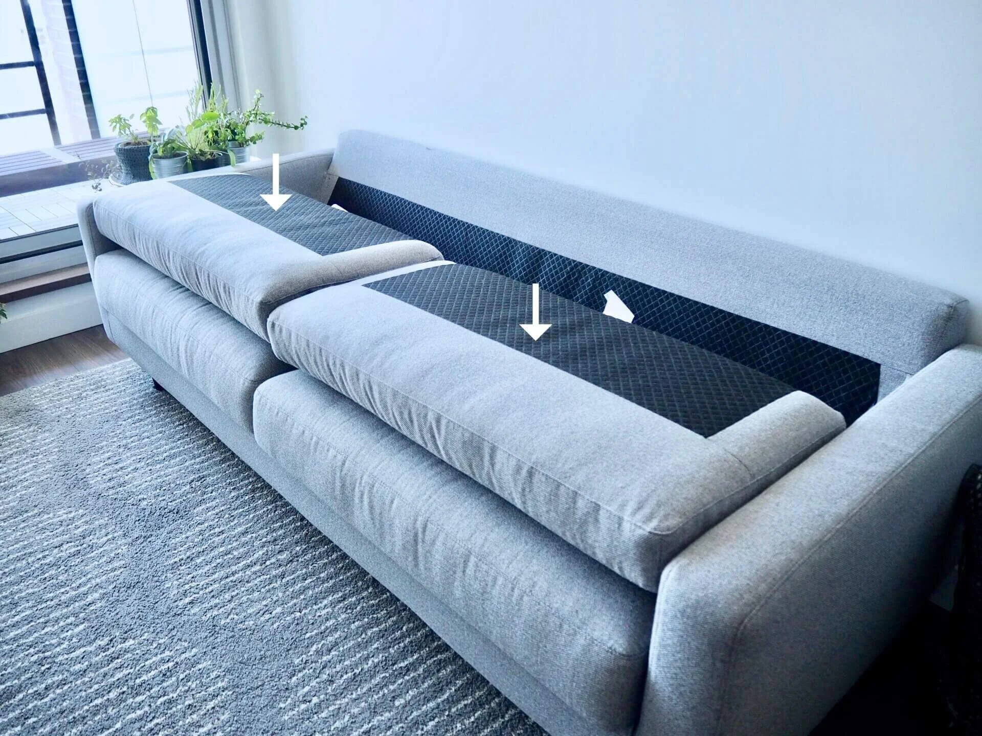 できれば3ヶ月おきくらいにまたこうやって背クッション&座クッションを外してお手入れしたいなと思います。