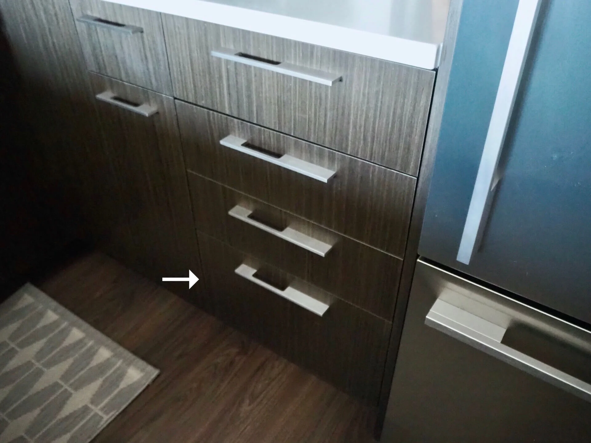 こちらのキッチンの引き出し収納の一番下に。