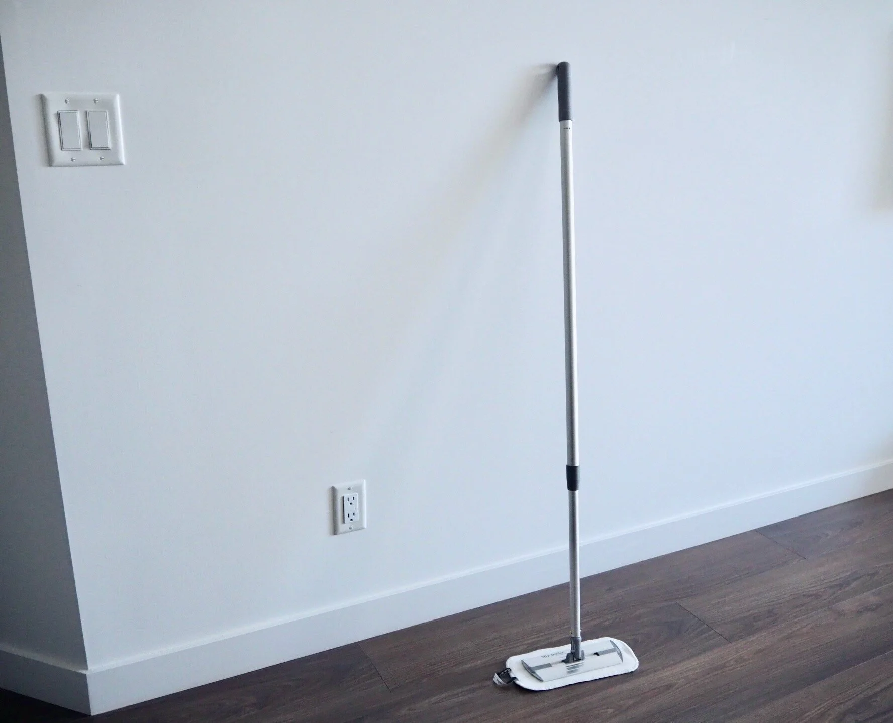 乾拭きも水拭きもできちゃうおしゃれなこのモップに(値段は安くないけど)これは買うしかないと。
