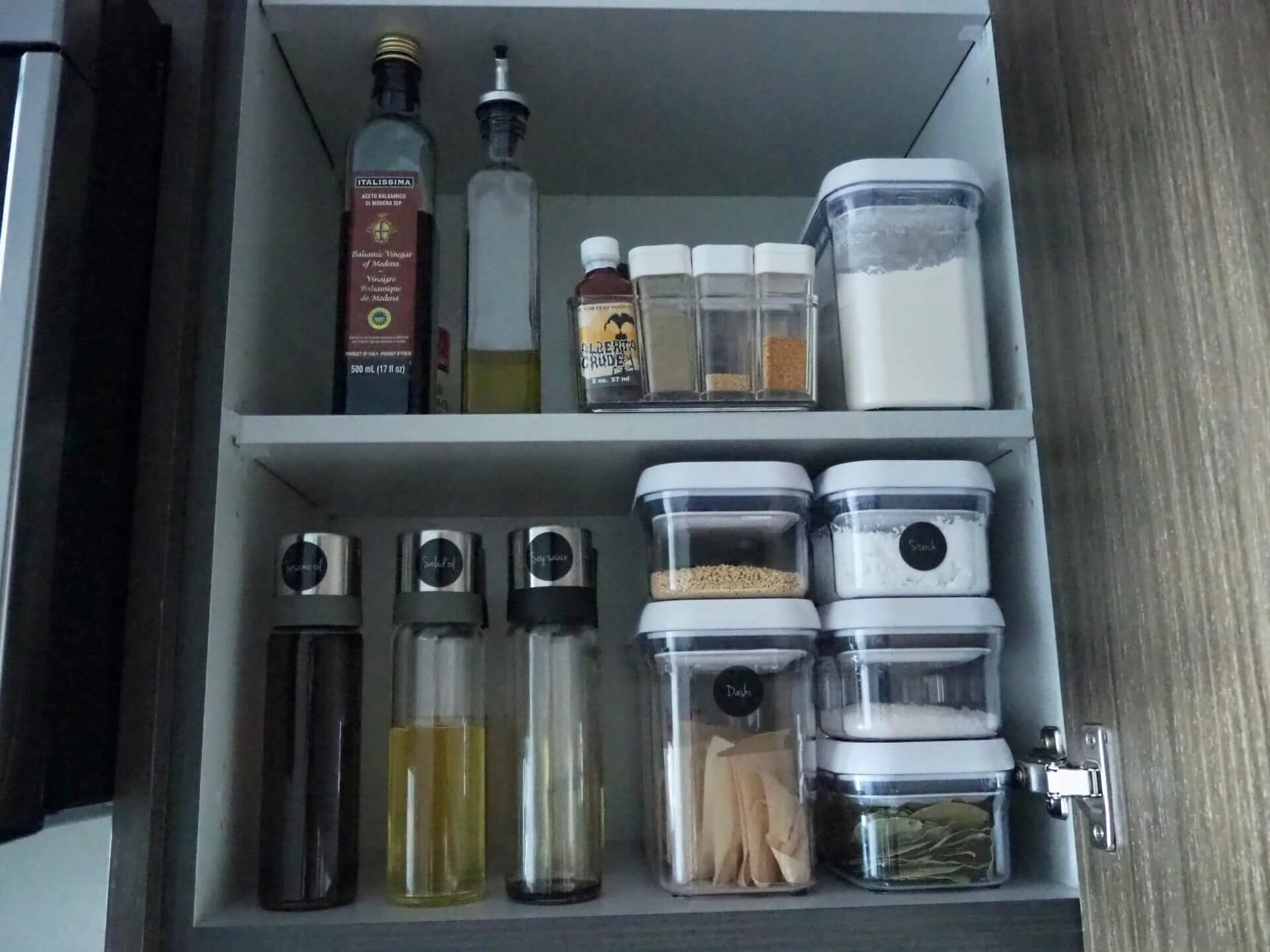 こうやってオイル差しと醤油差しを並べてみると 蓋の色が違うから見やすくて取りやすいという点もあり。(