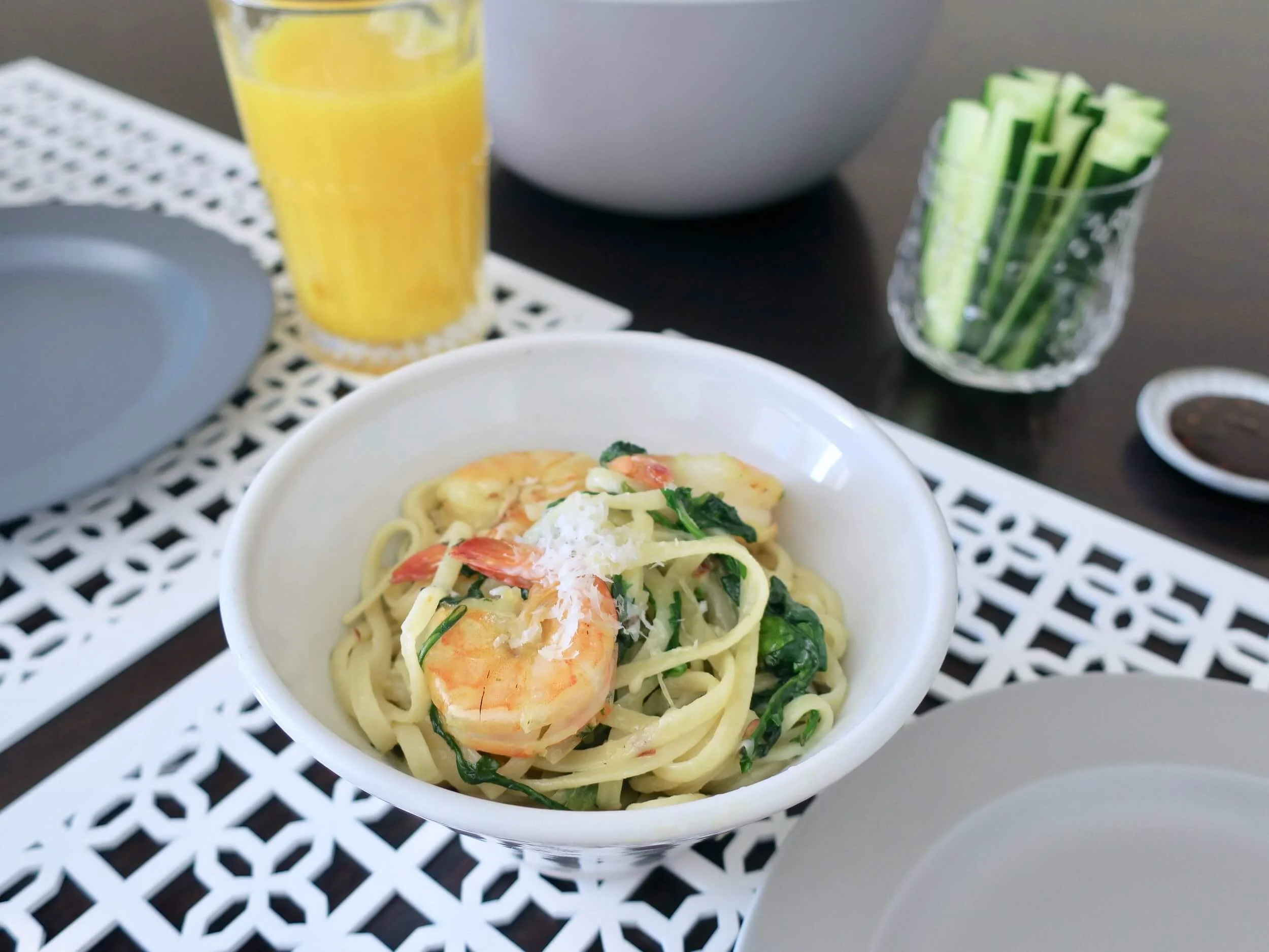 エビ入りバターたっぷりのパスタに