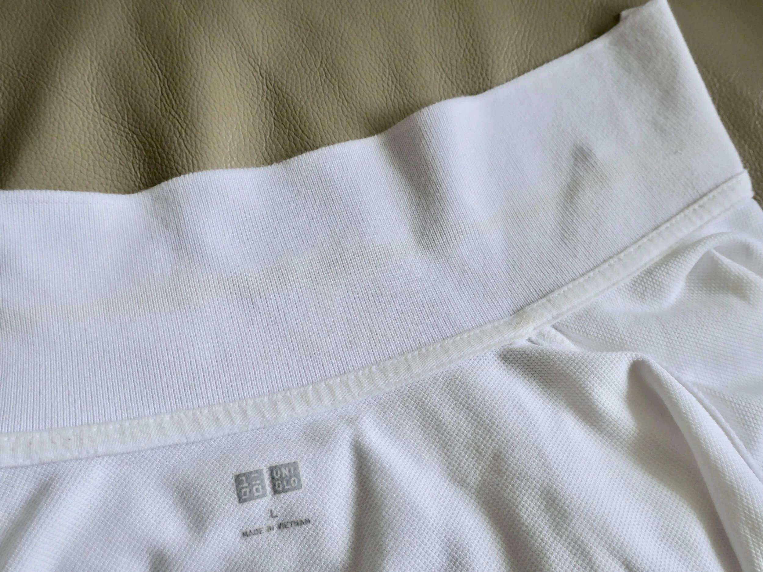 このユニクロのポロシャツもうっすら黄色い線ができちゃってます。