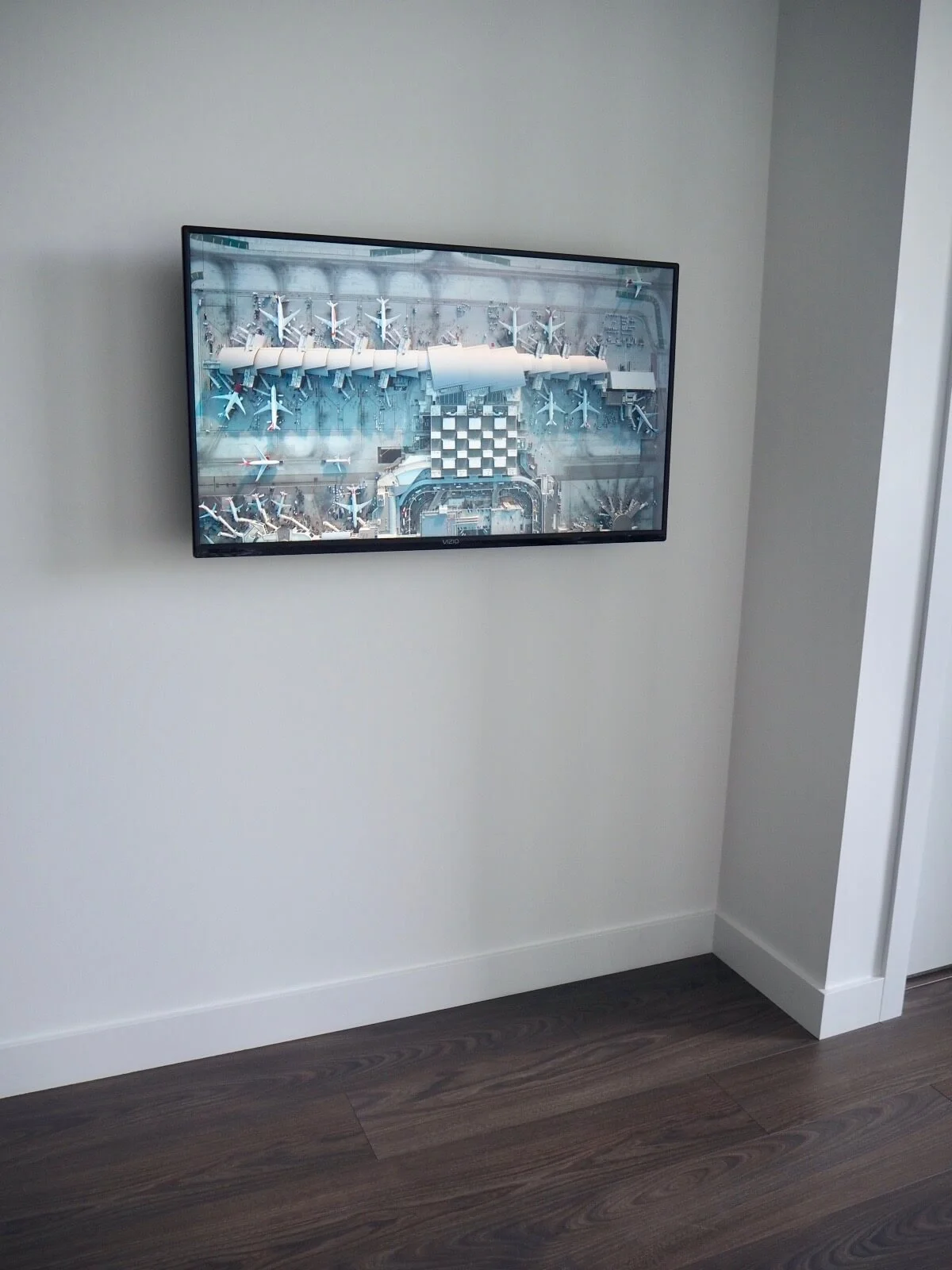 いつの間にか工事の日程が決められ あれよあれよという間にテレビが壁に設置されたのでした。