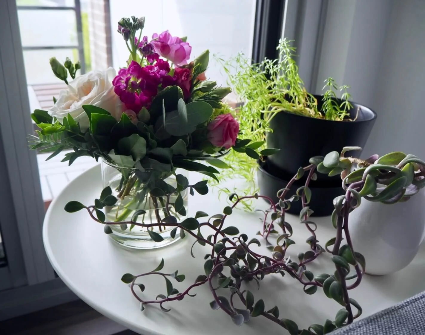 出産祝いにもらったお花をリビングにキレイに飾れてよかった。
