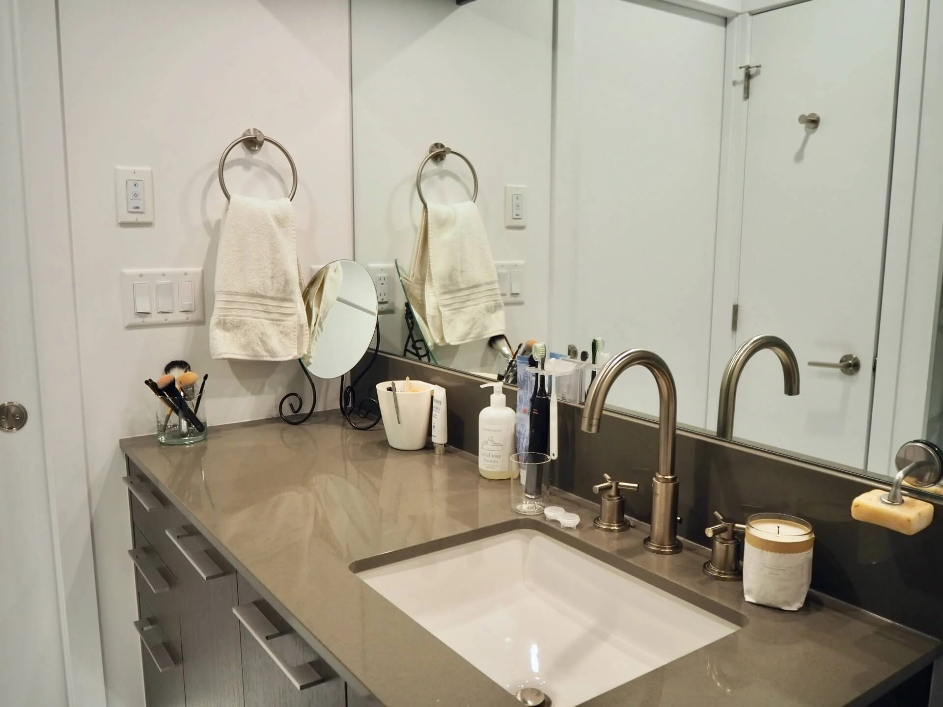 /わが家の主寝室にある洗面所(オンスイートバスルーム)。