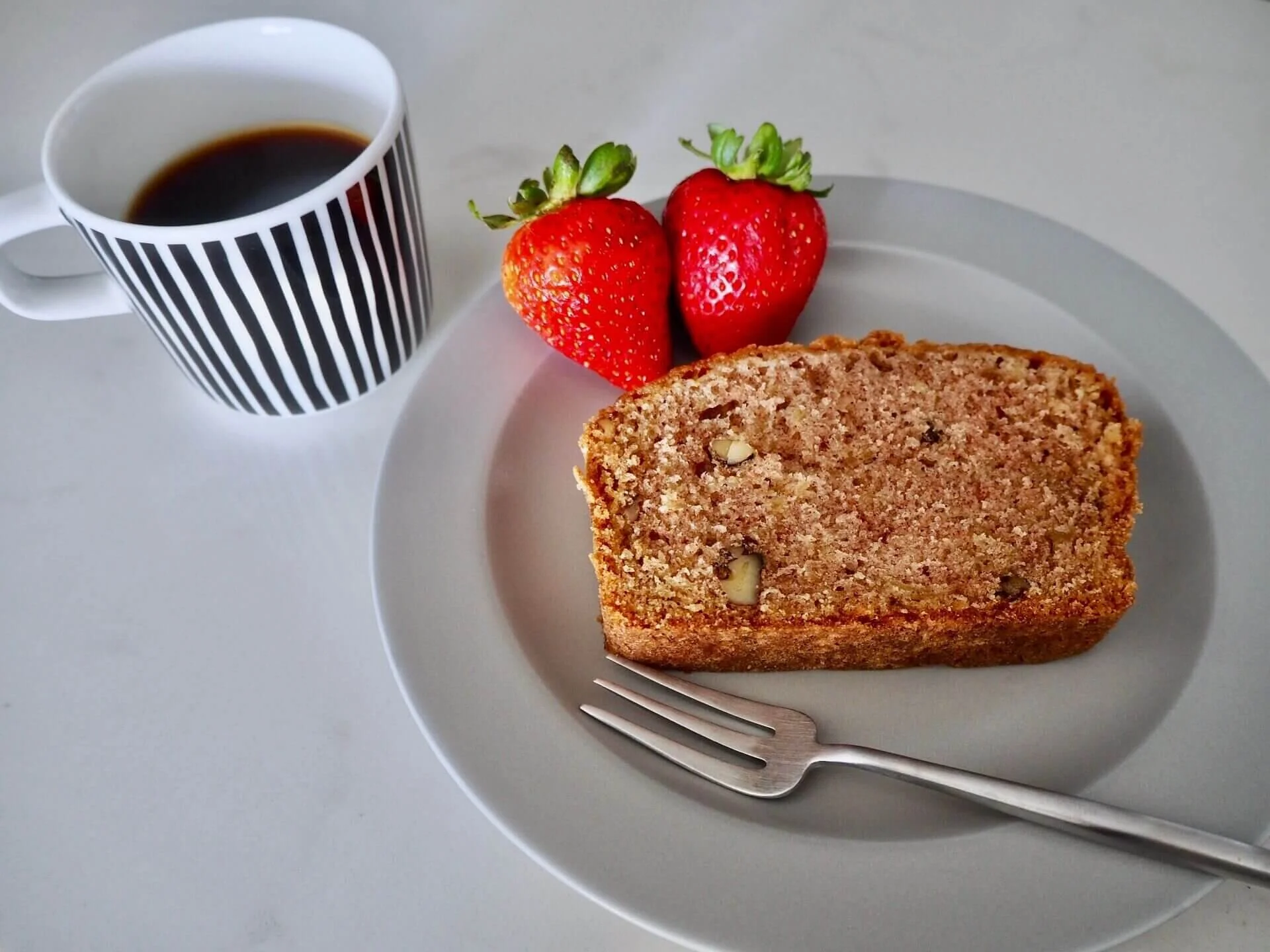 義母からもらったパウンドケーキとイチゴをおやつに。