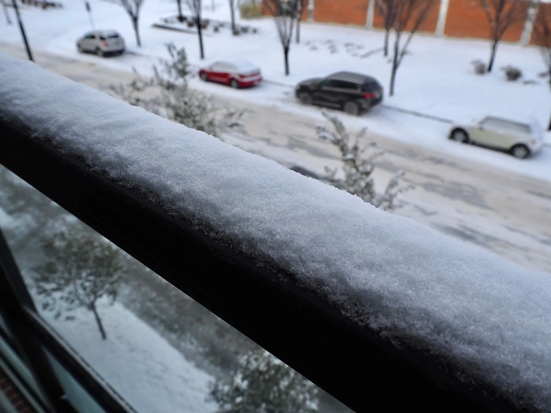 そこまで積もってはないけど今朝のバルコニーから。