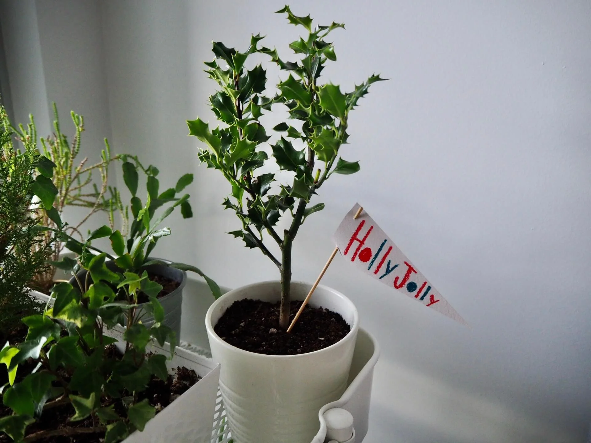 そういえば、クリスマスホーリー(ヒイラギ)もクリスマス用に買いました。