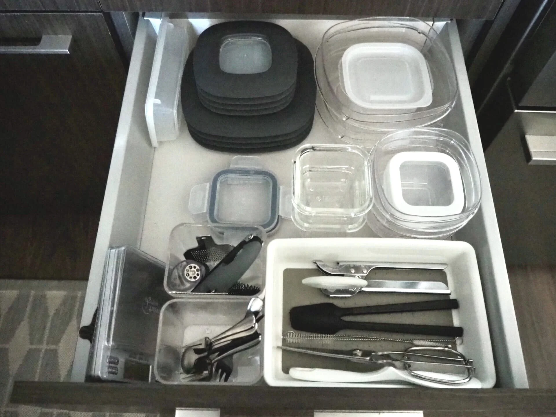 「保存容器って使用頻度高いから引き出し内に移動した方が使い勝手いいのでは?」と。