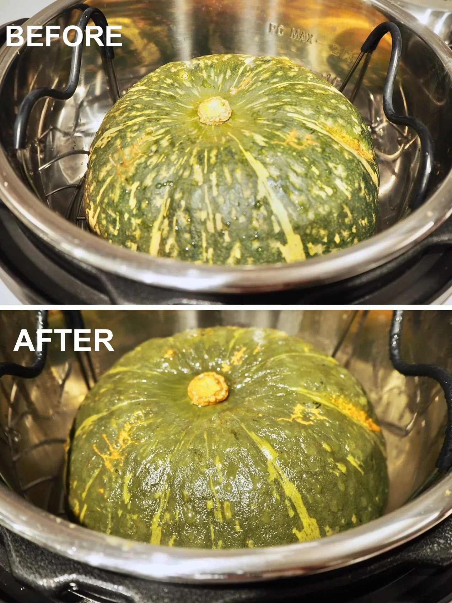 1200g以上の丸ごとのかぼちゃが30分後には中までしっかり柔らかくなりました。