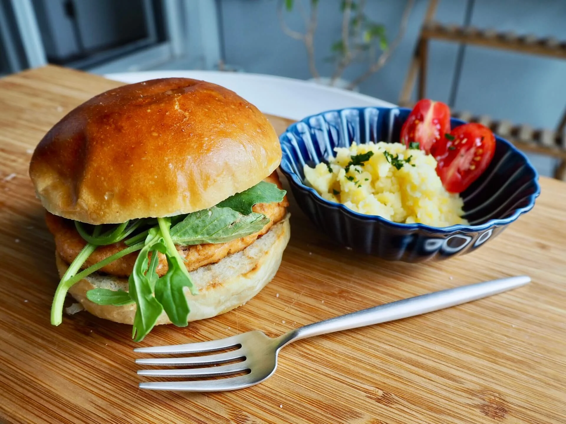 朝の味噌汁が残っていたのでそれとサーモンバーガーという和と洋の組み合わせ 笑(わが家の食卓のあるある)