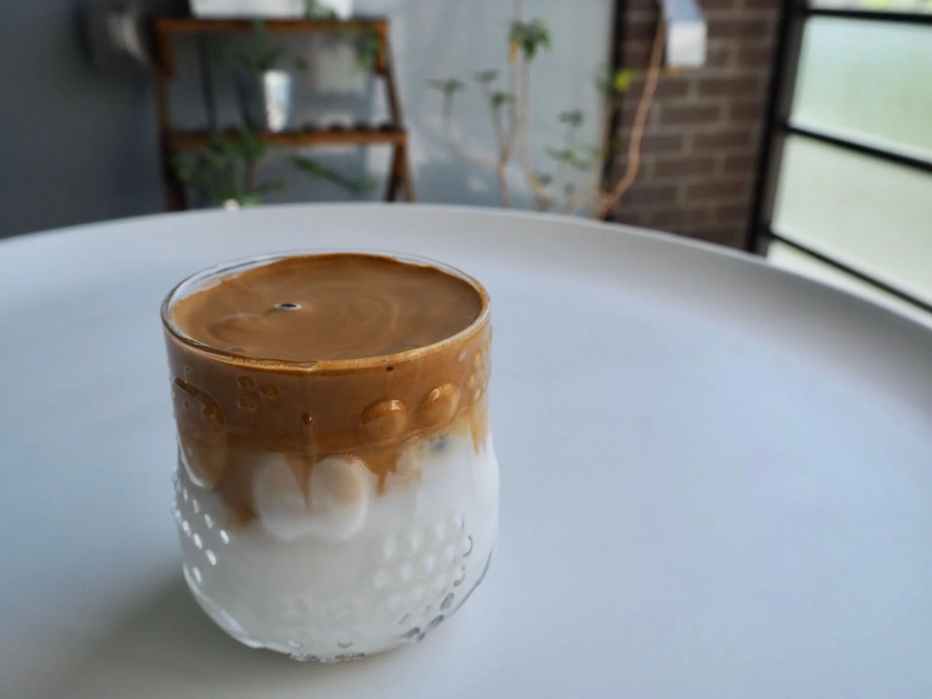 牛乳はグラスに対して8分目ほどまで入れてその上にコーヒー液をトッピング。