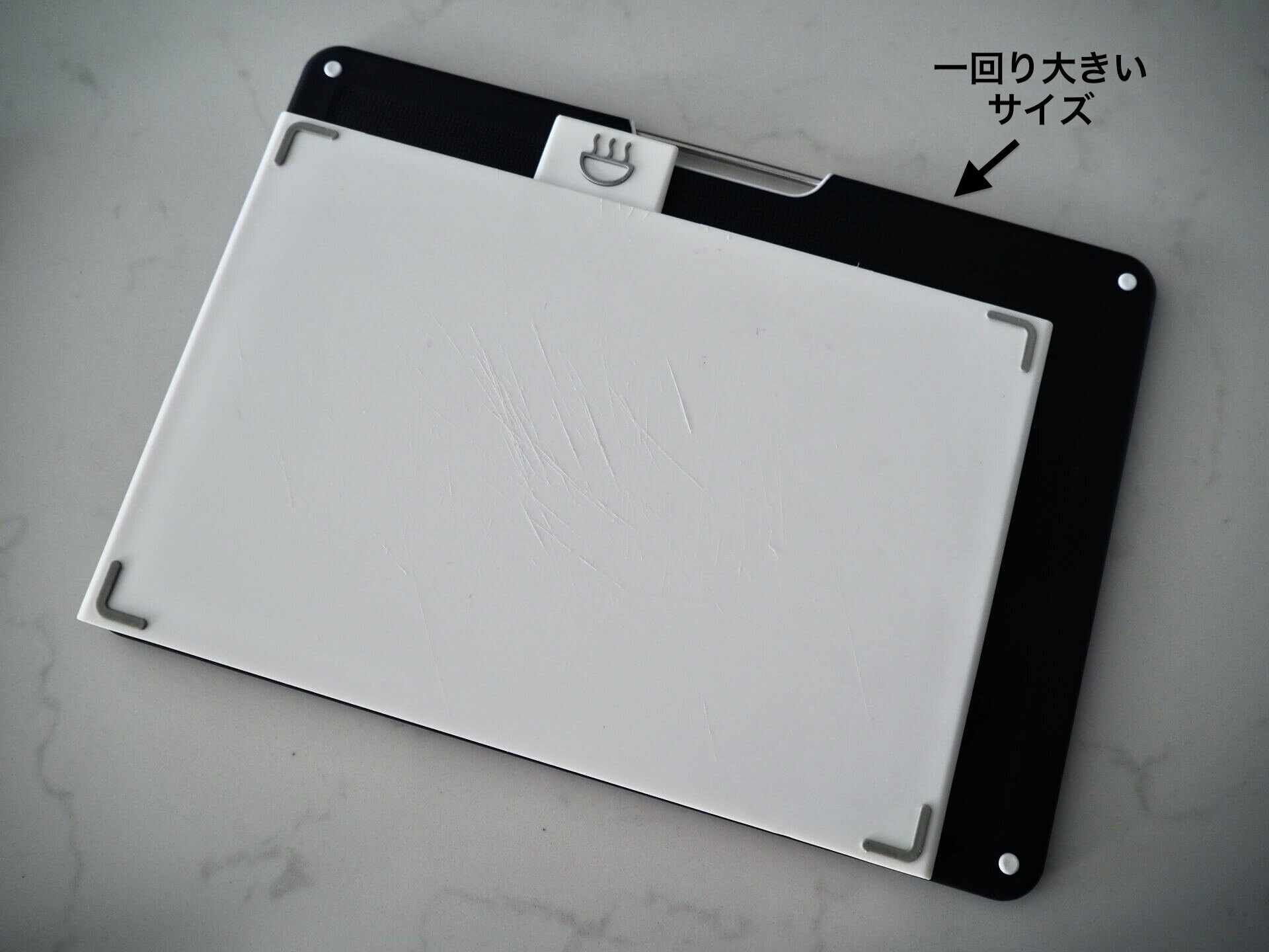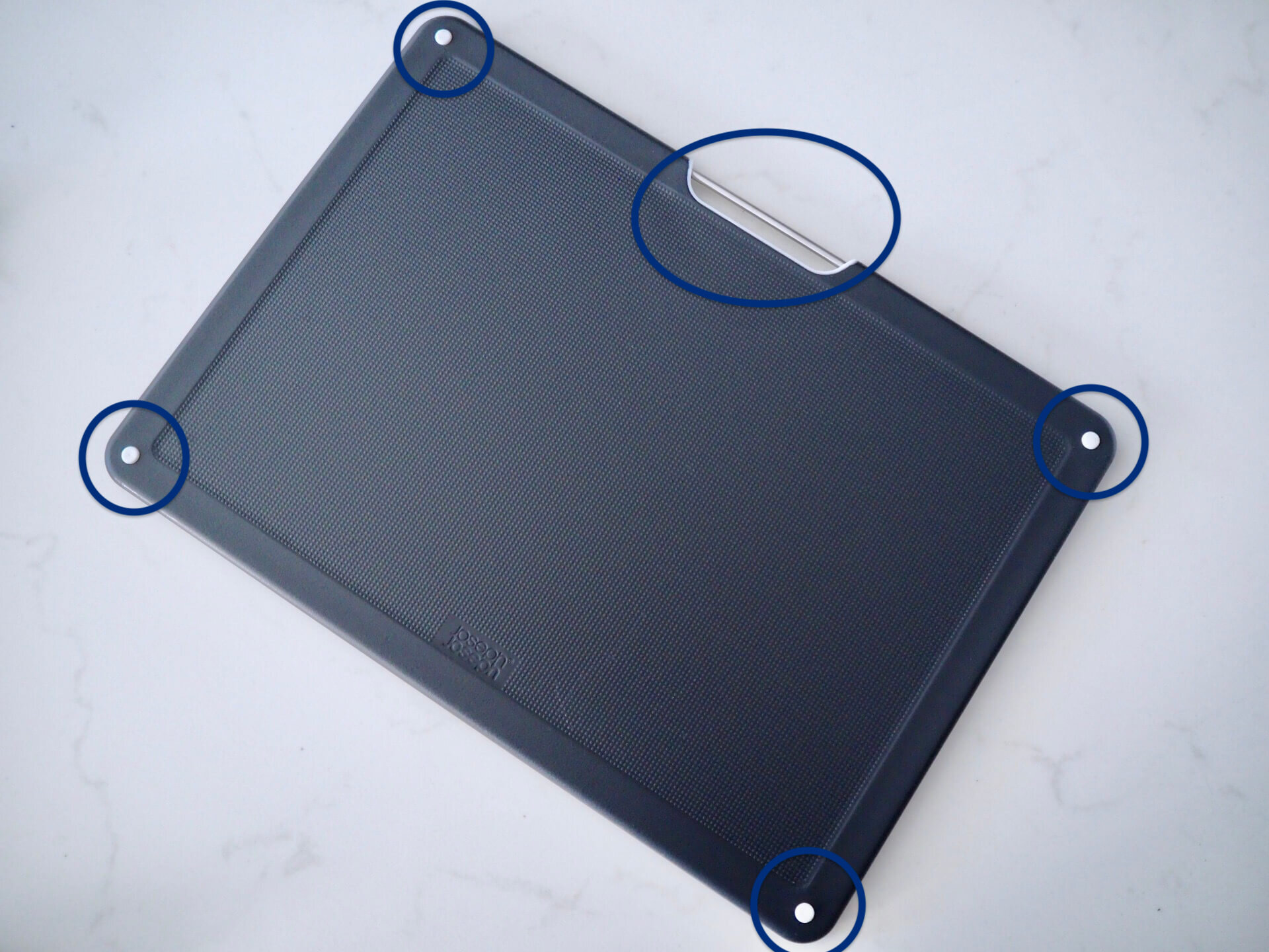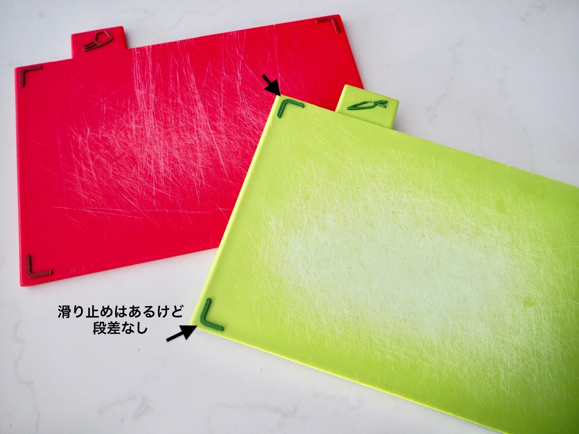 新しいまな板は4箇所の滑り止めとハンドル部分が色分けされいます。