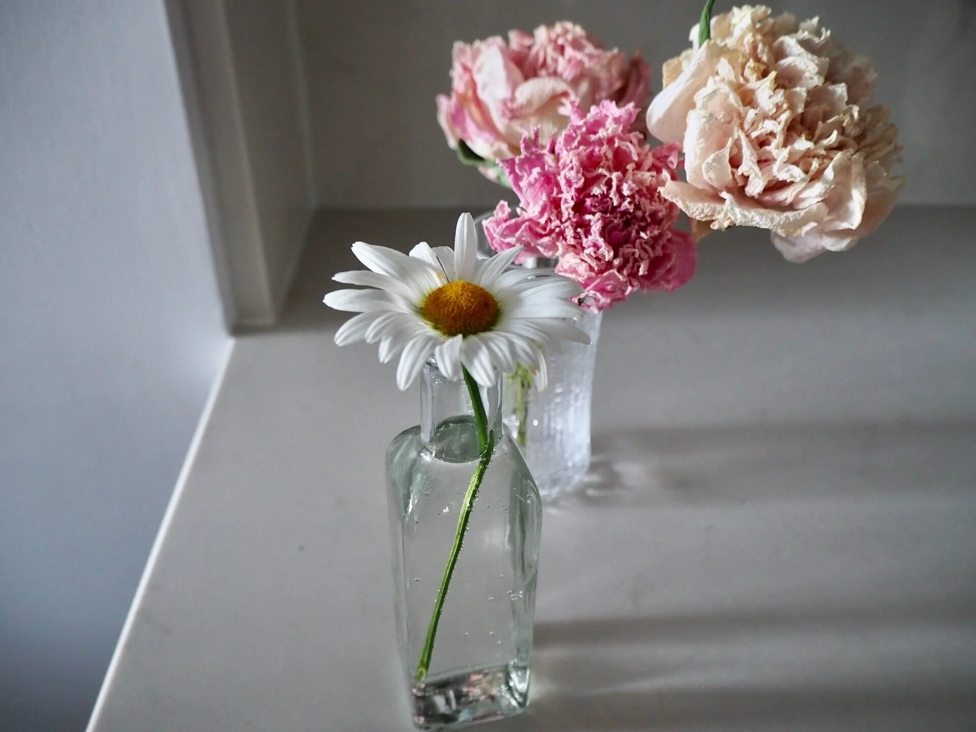1週間ほど生けていたのでその間に花びらもピンクから薄ピンクに変わり