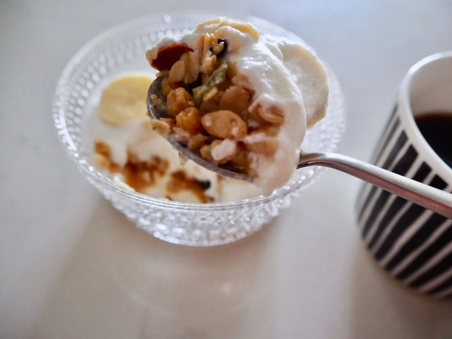 当たり前だけどヨーグルトと食べると牛乳よりも満腹感あるわー。
