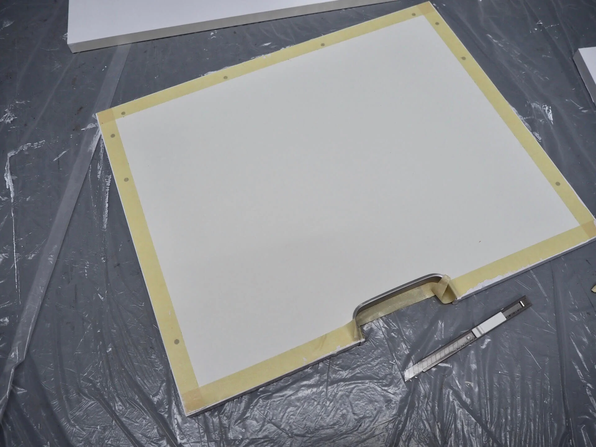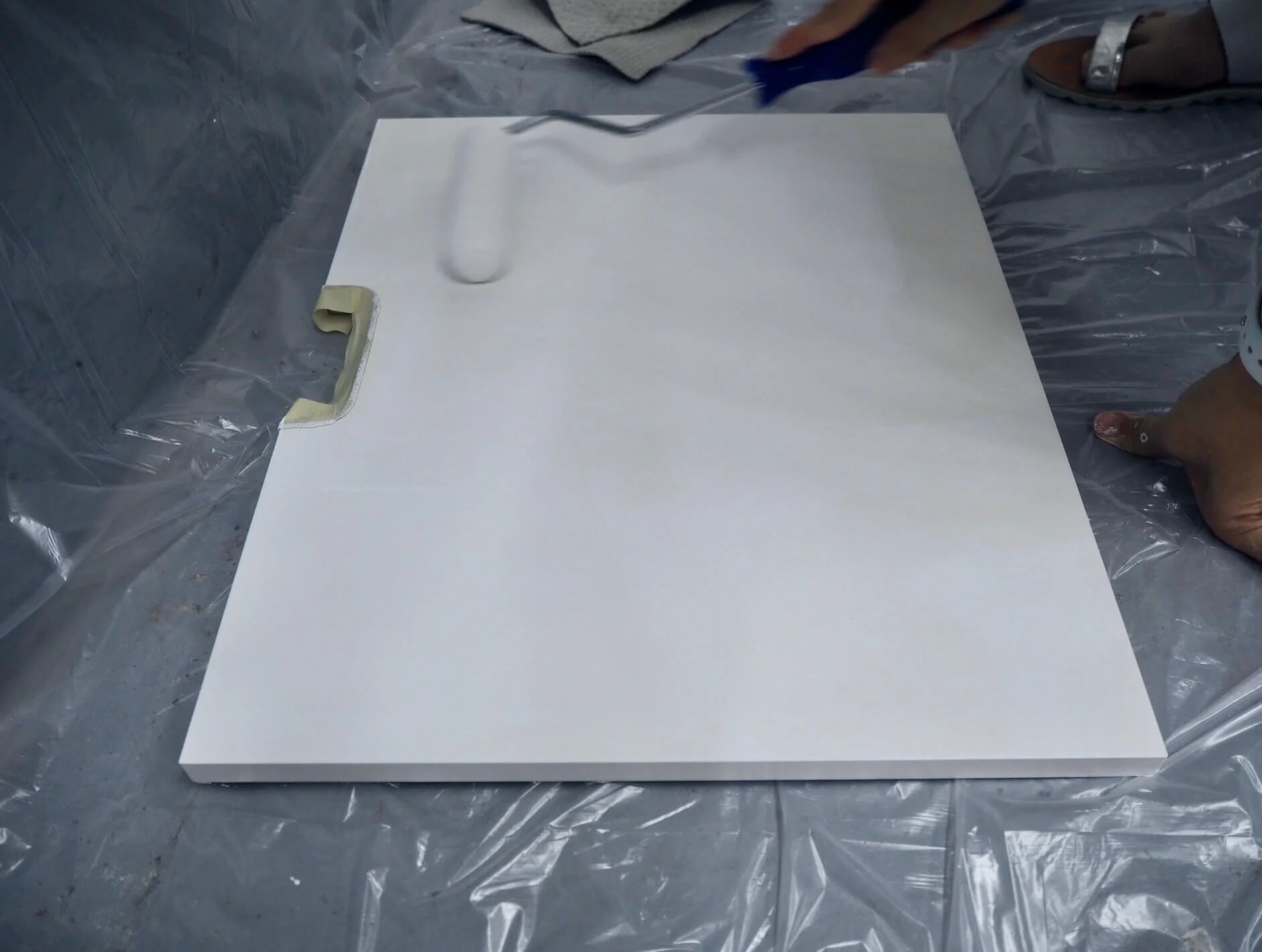ヤスリがけしないとプライマーがくっつかないと。(この製品はおそらくプリント合板、表面がツルツルしてます)