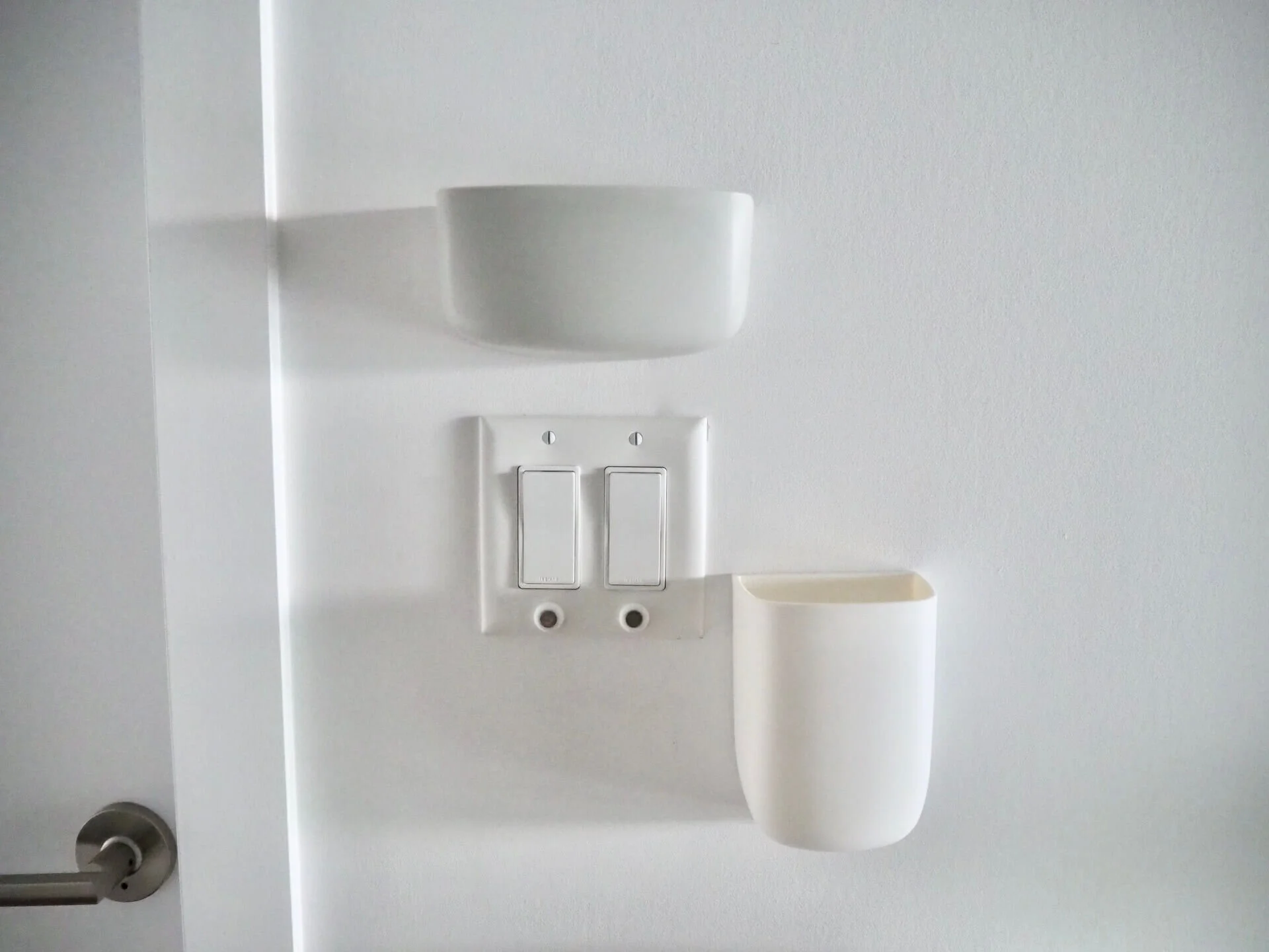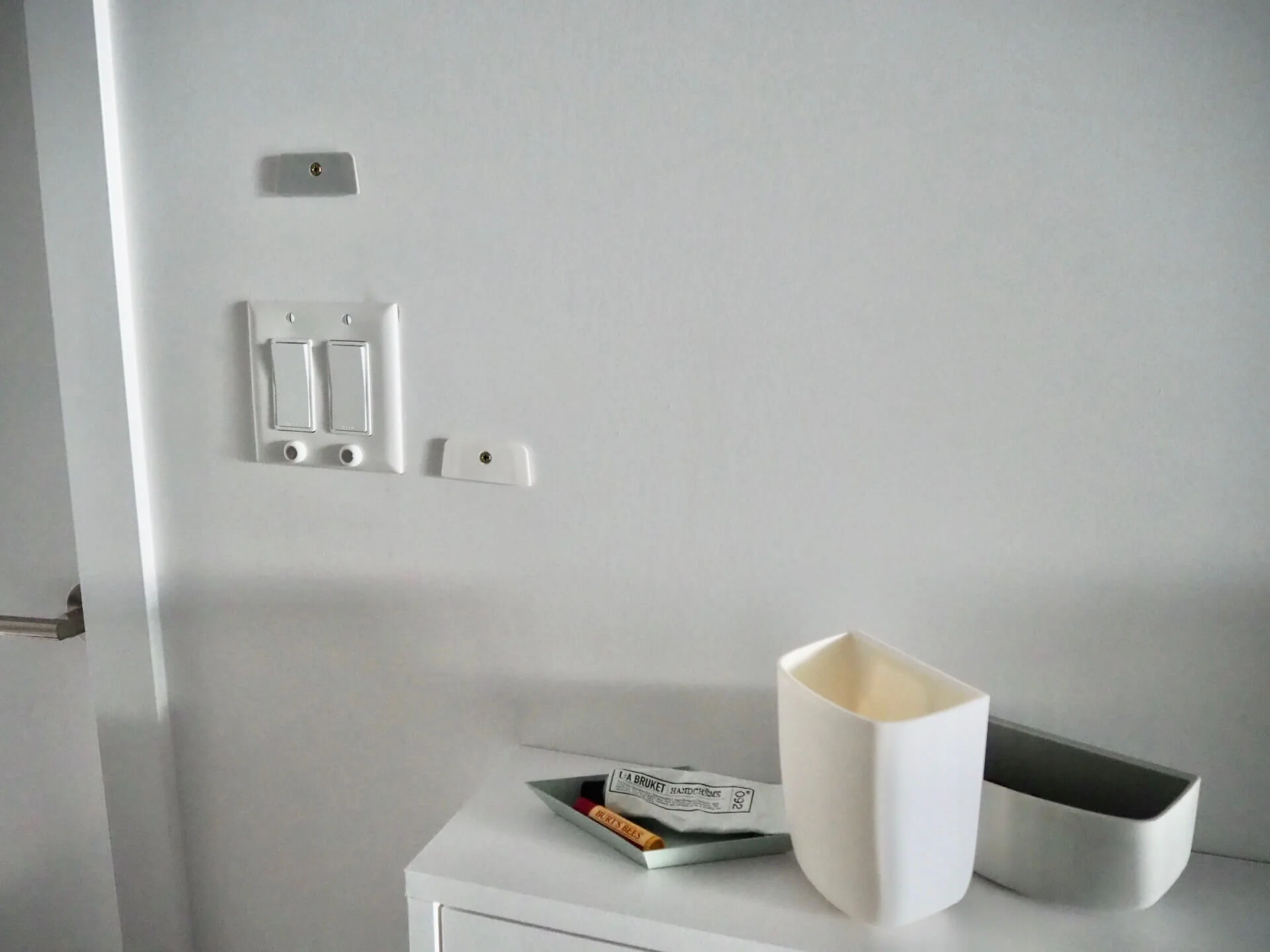 トイレの電気スイッチの下の留め具をマグネットに付け替えて夫の鍵をぶら下げ収納しているのがインテリア的にあんまり好きじゃなかったので…(このマグネットはすっごく便利なんだけど)