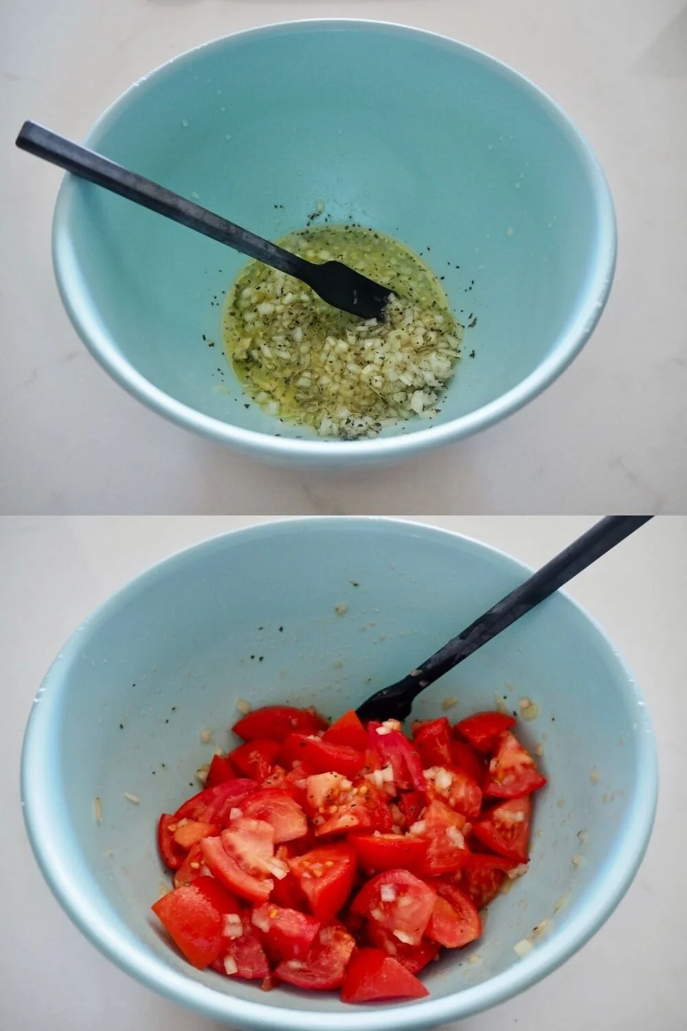 玉ねぎのミジン切りと調味料でマリネ液を作って