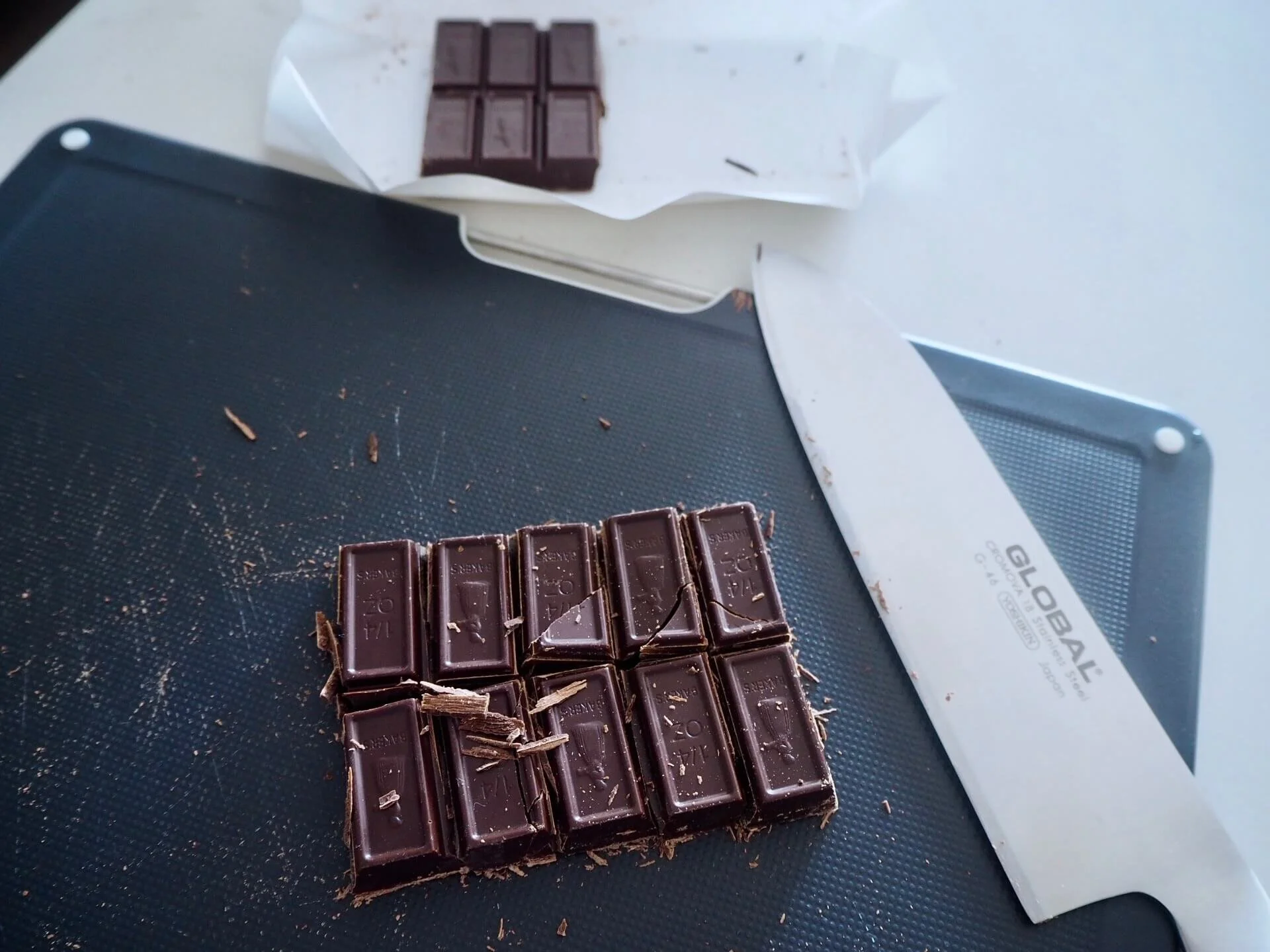 こうやって切り目が既に入った板チョコなので