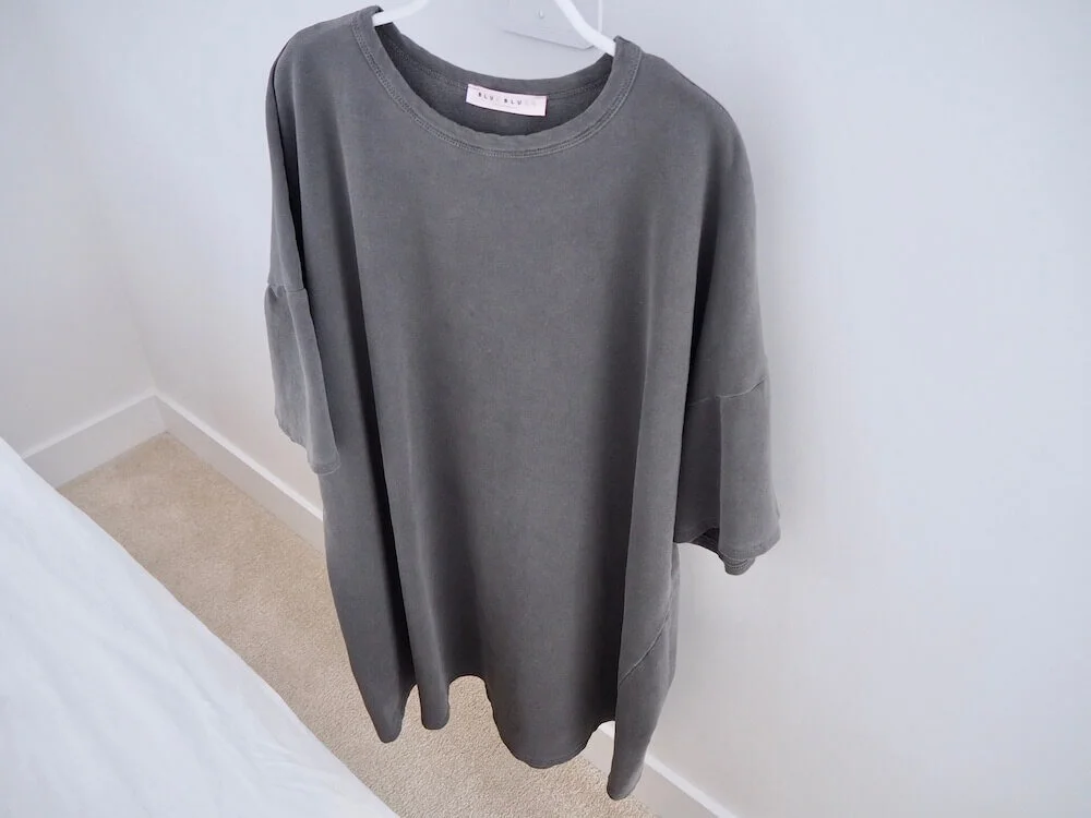 オーバーサイズワンピも楽チン。生地が柔らかくて着心地も良し。